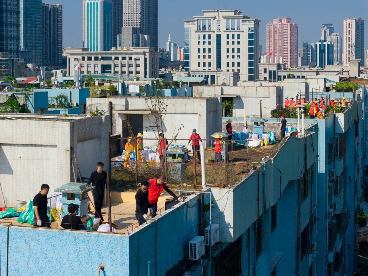 针对天台杂物堆积、易成蚊虫孳生温床的难题,创新使用无人机吊运设备,将废弃家具、建筑垃圾等大型杂物运至地面,完成7栋房屋天台整治,有效消除高空卫生隐患、提升工作效率。行动中共出动7车次清运垃圾51吨。