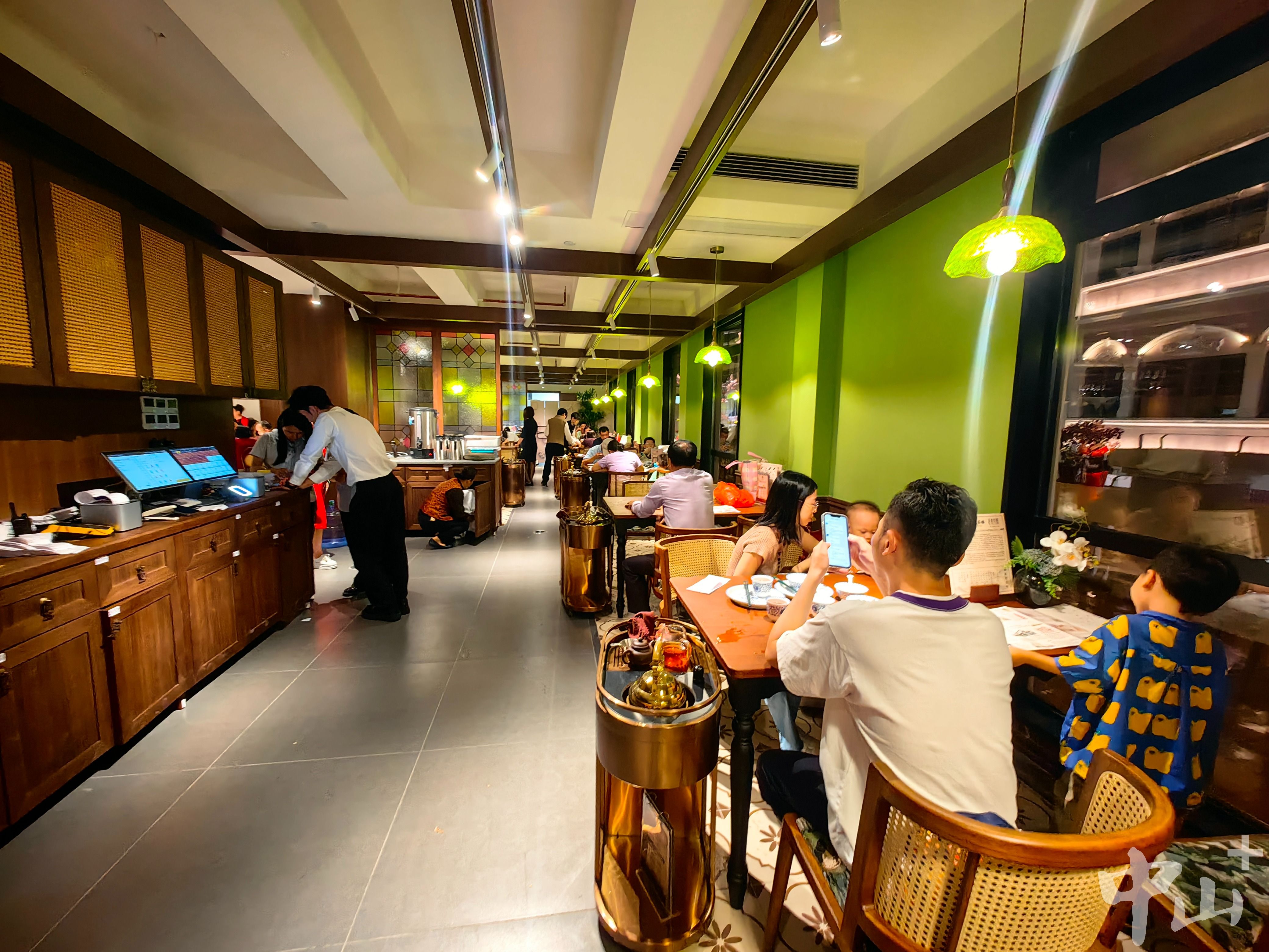 “从早上8点就有人排队,单日接待超600人,乳鸽、扣肉、小榄炸鱼球、‘禄鹅’等中山名菜每天都售罄。”孙奇珍茶楼暂代店长杨艳介绍,除了地道美食,茶楼还通过文化场景营造增强体验感:早茶与晚餐时段,二楼大厅有古筝演奏;中秋国庆双节期间,粤剧名家钟绍辉每晚7点登台献艺。而彩色玻璃窗、复古骑楼陈设,搭配服务员的怀旧服饰,更吸引游客穿上中山装、旗袍拍照打卡,“不少深圳游客愿意等1到2小时,就为感受这份独特的复古氛围。”