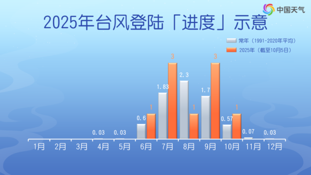 值得关注的是,常年平均末次台风登陆日期为10月6日,但今年台风活动较为活跃。截至目前,今年登陆我国的台风数量已达9个,较常年偏多。