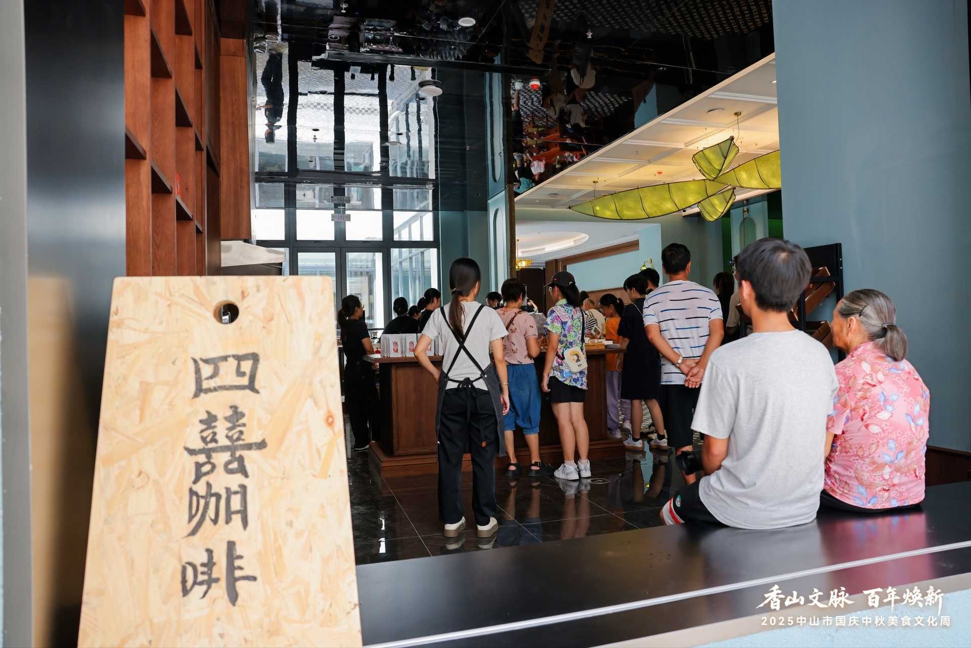 除了“吃”和“购”,孙文西路的“玩”同样精彩。香山剧场里,流行乐专场、复古爵士乐、中秋诗词歌赋大会、话剧《中山先生》特别版接连上演,为市民游客带来一场场视听盛宴。剧场旁的咖啡集群亦成为年轻人的“聚集地”——瑞幸、四囍、香山3家咖啡店分点布局,以各具特色的饮品与空间设计吸引不同客群驻足。香山古城公司招商经理蔡杰透露,后续还将在背街小巷引入更多特色咖啡空间,与主街形成错位互补,进一步丰富消费场景。