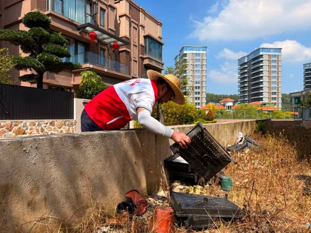 针对绿化带、背街小巷、闲置地、楼顶天台等易积水区域,五桂山街道组织开展“翻盆倒罐”专项行动,全面清理积水容器;对小区楼道、地下车库、绿化带等蚊虫密集区域实施专业消杀,并对难以消除的积水点精准投放灭蚊药剂,有效降低蚊媒疾病传播风险,筑牢公共健康安全屏障。