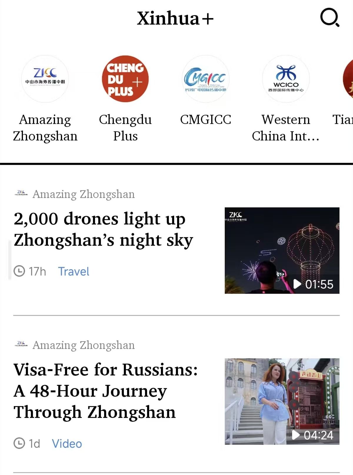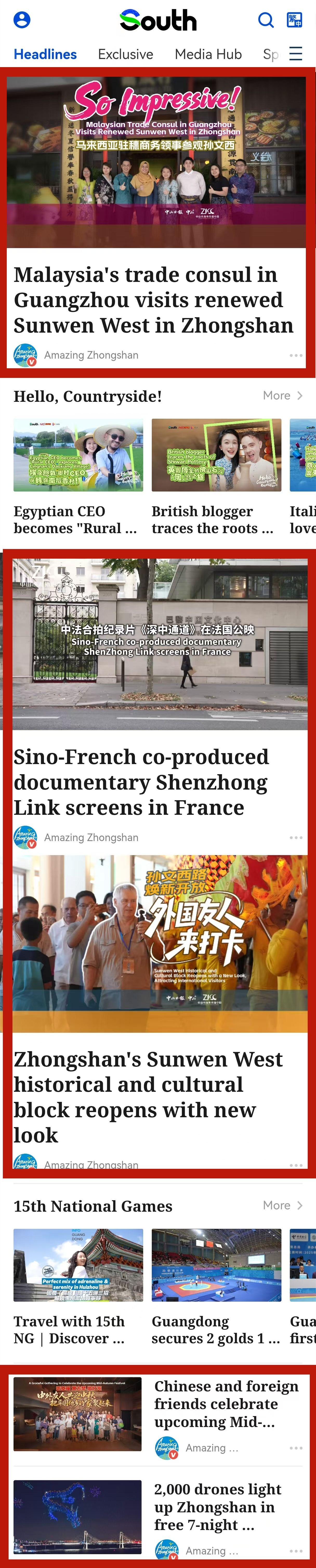 为了宣传国庆假期期间的中山文旅,中山市海外传播中心特别邀请多位在中山生活的外国友人,拍摄专题视频。《孙文西路焕新开放,外国友人来打卡》《免费观看,连演7天!2000架无人机点亮中山夜空》等视频,均获得Xinhua News App采用并转载,South App更是将这些视频推荐到首页,让全国各地的外国友人,都能通过手机客户端,看到中山精彩的文旅活动。