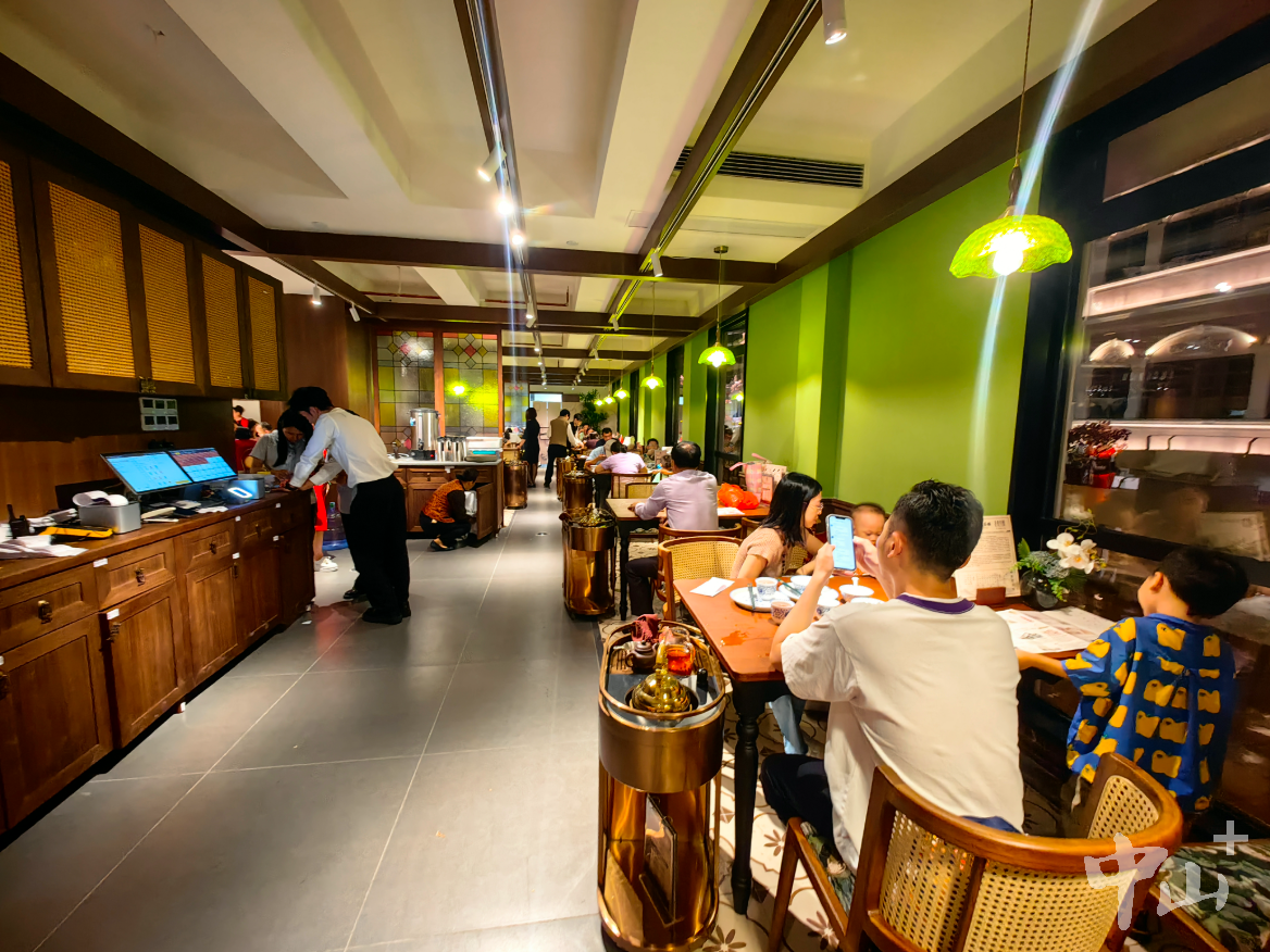 老字号与新派餐饮的双向奔赴,是这场消费热潮的鲜明注脚。自9月28日开业以来,以“民国奇珍茶楼”为魂的孙奇珍酒楼,便将火爆二字写在了每日的等位号上,地道的广府早茶搭配民国风环境与粤剧经典、古筝雅乐,创下日均接待超1000人次、翻台10轮、营收破4万元的纪录。酒楼内,白发苍苍的老者轻摇蒲扇,对着虾饺的晶莹剔透连声赞叹;年轻情侣倚在雕花窗边,用手机定格服务员旗袍摇曳的剪影。而“小而美”的南洋菜馆南成行,则凭炸榴莲、咖喱角等单品日销五六百粒,虽目前只开放6张餐桌,每日营业仅7小时,营业额却突破万元,效益更胜许多大型餐厅。
