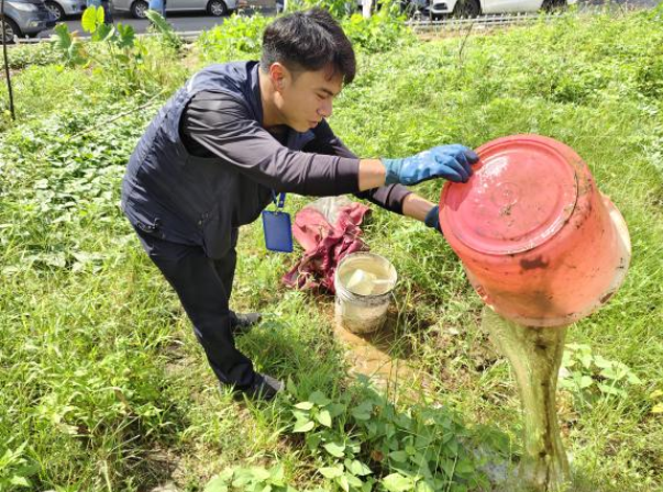 工作人员围绕背街小巷、闲置地块、农贸市场周边、河道水滩等重点区域,开展拉网式排查,全面清理积存垃圾和杂草杂物,彻底消除蚊虫孳生环境。同时,工作人员深入居民区、商户、厂区及公园绿地等,仔细排查各类水体容器,协助群众清除闲置盆罐、废旧轮胎内的积水,对无法清除的积水投放灭蚊幼剂,从源头上控制蚊虫密度。