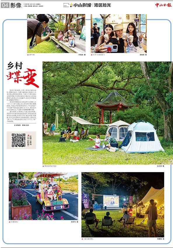 国庆中秋假期,五桂山桂南村游人如织。香樟公园内,古树下露营者自得其乐;沙爷河旁,游客纳凉赏景。当地11个湾区地标美食馆搭配不同的沉浸式主题活动,将田园风貌与美食文化完美融合;观光车穿梭其间,满载欢声笑语……