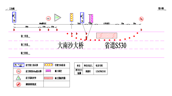 省道S530线港口段K30+470~K31+830路段大南沙大桥,占用三角镇往港口镇方向左侧第一车道进行施工作业。