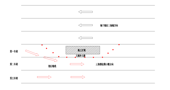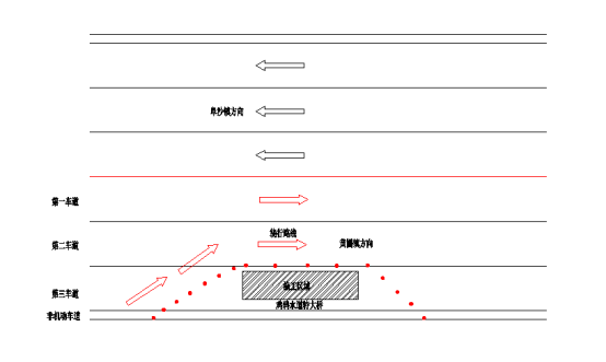 ▲占用第一车道施工作业时,对第一道进行封闭施工,车辆可从右侧车道通行。