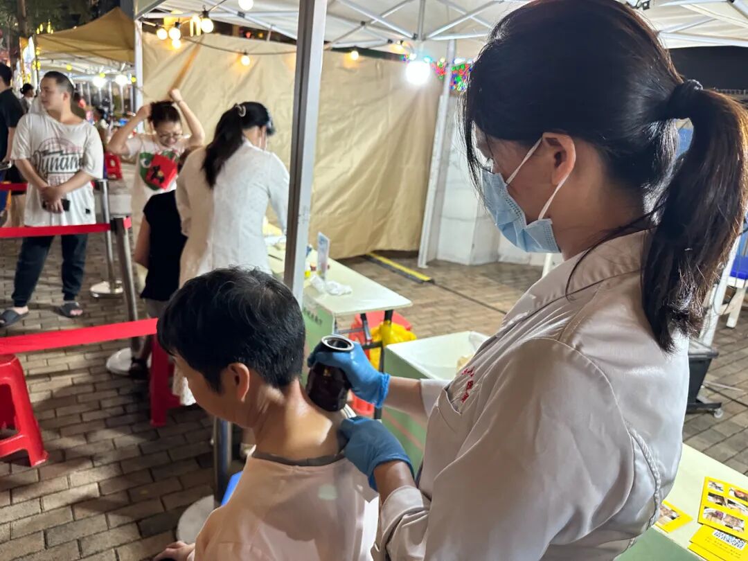 针对假期结束常见的疲惫、情绪低落等“节后emo”,夜市推出多项中医特色疗法。温经通络的“灸”界明星——火龙罐疗法,直击手脚冰凉问题;虎符铜砭刮痧与棍针拨筋,则有效缓解关节僵硬,疏通经络后的轻松感让街坊直呼“如释重负”。