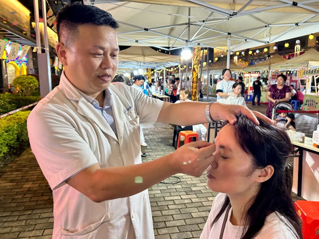 中山市中医院、小榄人民医院、广济医院等多家医疗机构的中医专家亲临现场,为市民提供一对一把脉义诊。来自广西的潘明甫医生——中山市“百技千方”中医药传承工程引进专家,带来独特的壮医药线升阳灸法,展现民间传统技艺的深厚魅力。