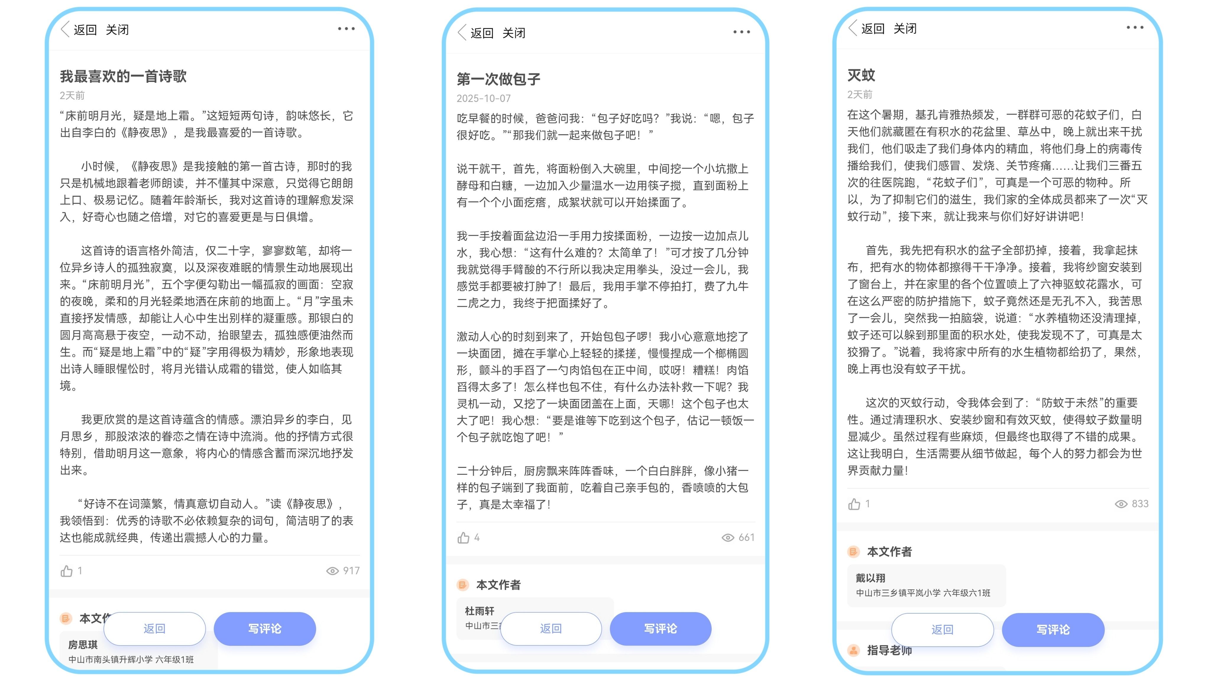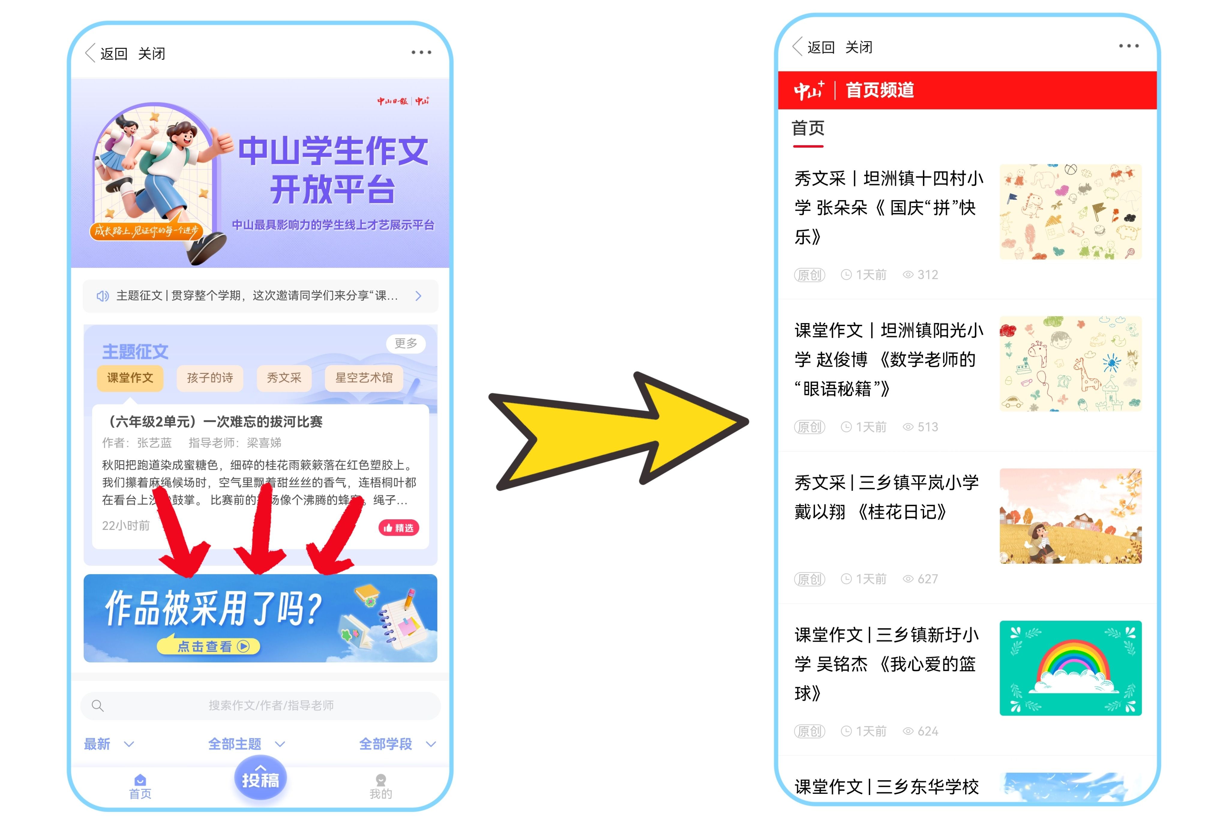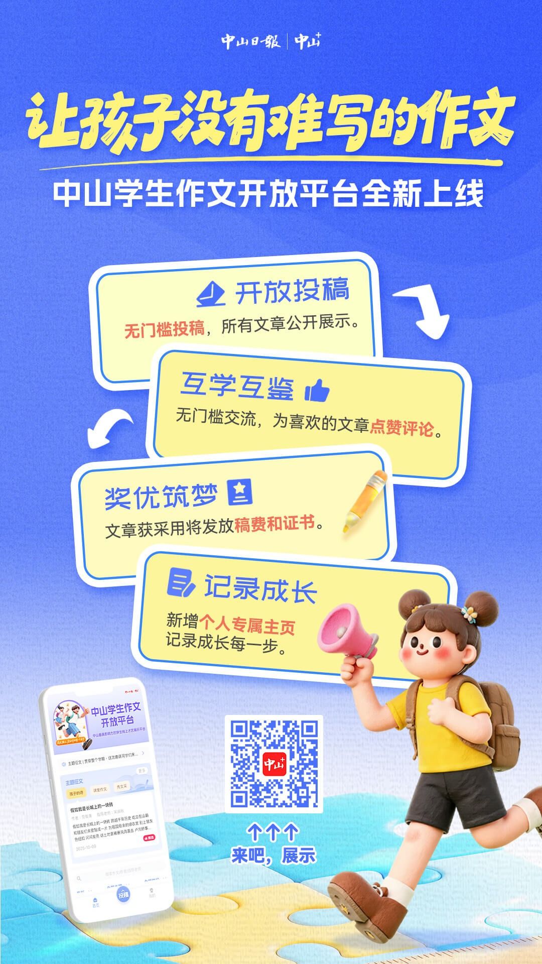 不用担心作文还不够好,“中山学生作文开放平台”可以零门槛投稿。不管是课堂上写的命题作文,还是课后突发奇想的随笔、日记,或者是自己创作的诗歌、小故事,只要你想分享,都能轻松上传。