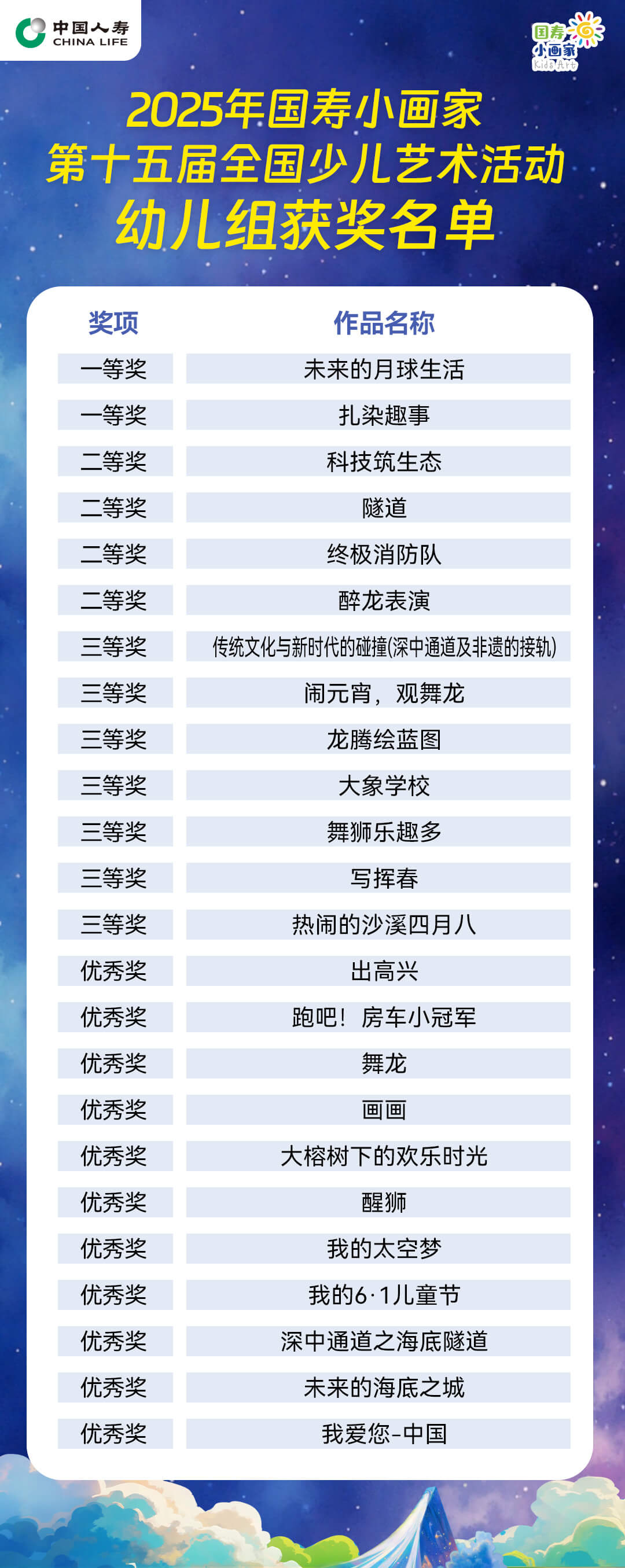 本次大赛线上线下共收到8264幅充满创意的少儿画作,经过初审和终审两个环节,最终评选出110个个人奖项和11个团体奖。