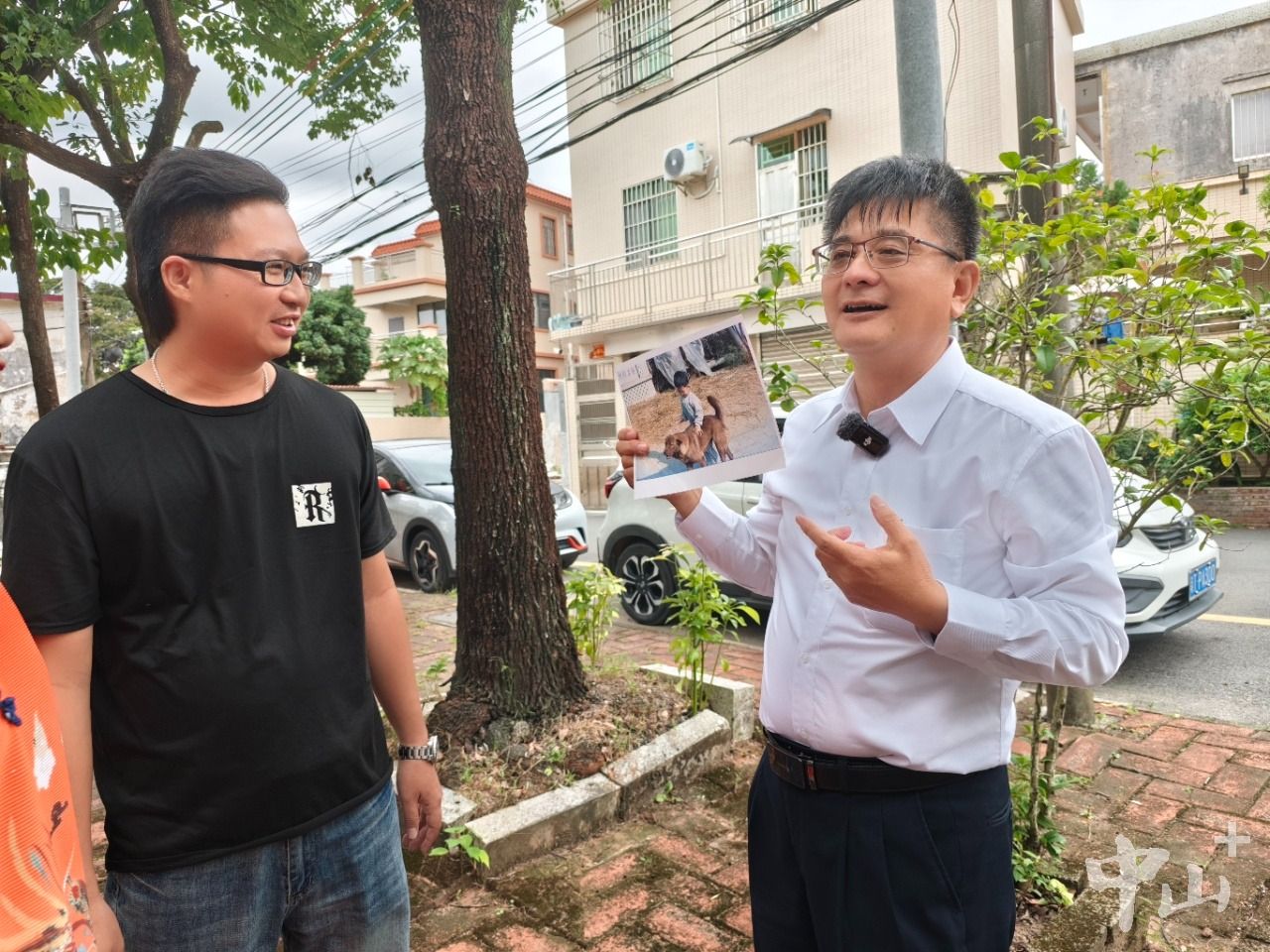 “真是太有缘分了,没想到35年后我们还能再见!”10月21日下午,在中山市火炬高新区五星小区蓢尾村的陈氏宗祠前,“中山好人”曾旻雨难掩激动之情,紧紧握住陈艺海的手,将一张35年前拍摄的照片递到他手中。