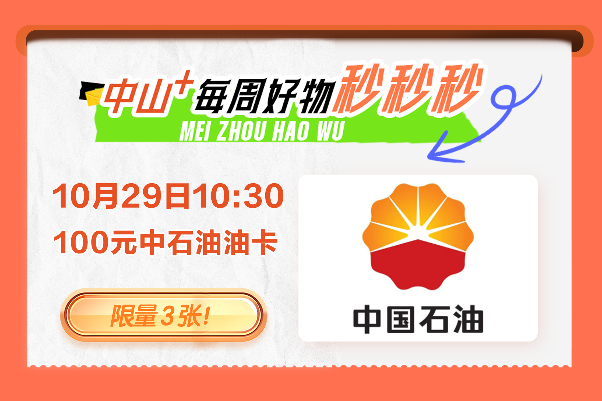【“中山+”每周好物】50积分秒杀100元加油卡!明天10:30准时开抢