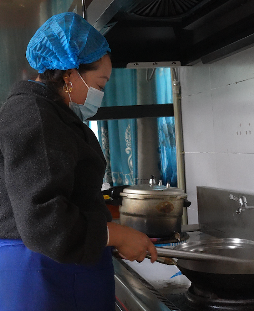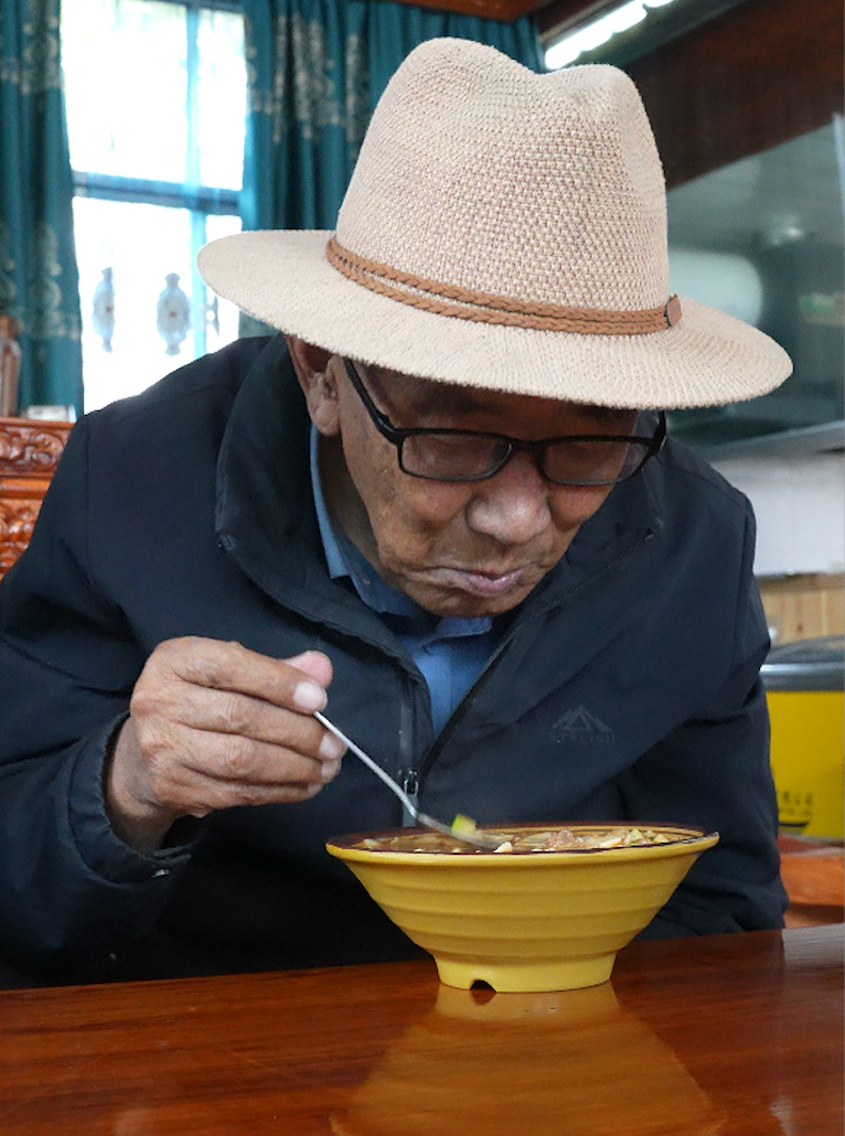 茶馆对所有人开放,一壶2磅的甜茶10元,最贵的牛肉饺17元,藏面10元,而对村里60周岁以上的老人统统半价。最贵的饺子只收8元,78岁老人朗旦说:“每天来这里点壶茶,和老友分着喝,再点份炒面,就可以待一下午,总花费不超过10元钱。”
