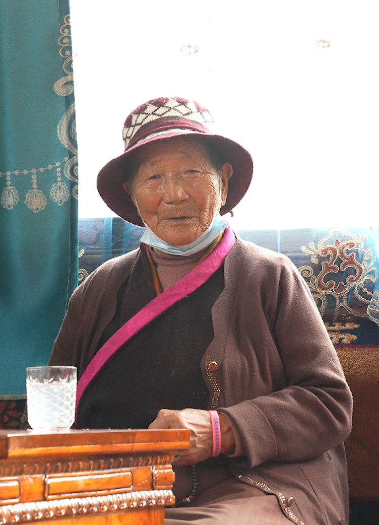她二十多岁时还在当农奴,“当时给地主家做工,供人差役,没有自由,去拉萨都是靠走路,马脖子上的铃铛坏了,也会怪在我们头上。”谈起这些,益西拉姆的眼泪就掉了下来。为了躲避债务和各种赋税,她随着家人四处奔波。西藏和平解放后,她分到了牛、马还有土地。如今她有7个子女,现在和其中一个儿子生活在一起,家里有楼房、土地、十来头牦牛,还有双开门冰箱。“现在吃得饱、穿得暖,生活真的很好。”益西拉姆很感恩现在的生活。