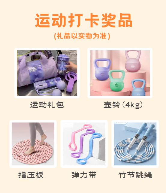 每周抽奖福利:累计打卡 7 天,即可获得一次抽奖机会。奖品丰富多元,同时收获健康与快乐的双重馈赠!