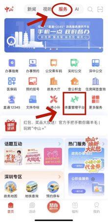 2.在 App “服务页” 找到【体重管理平台】浮标。
