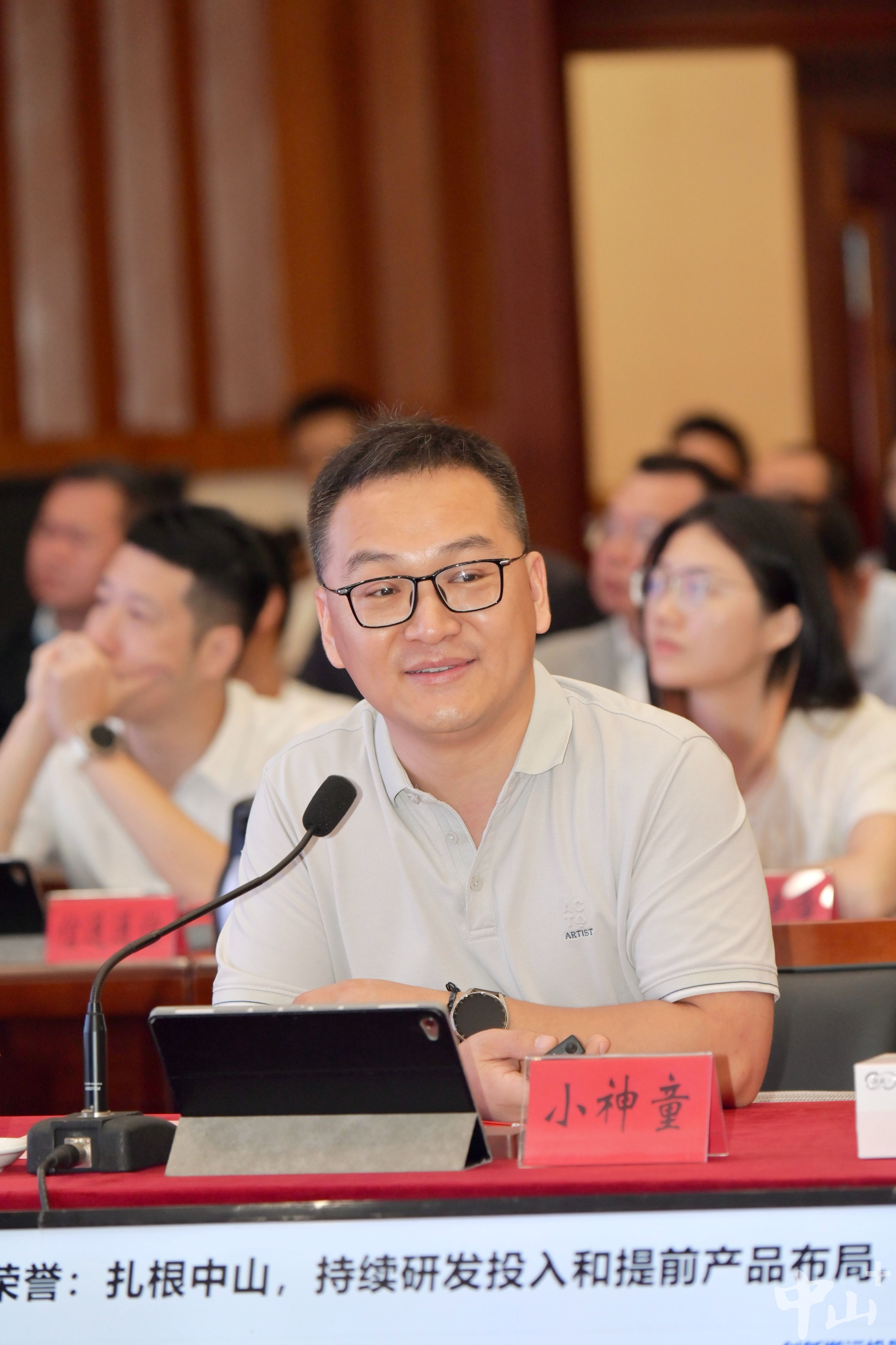 平稳上下楼梯,自动转弯、避障……11月1日上午,在第四届中山企业家日“致敬企业家 中山专精特新百企座谈会”上,中山小神童创新科技有限公司(以下简称“小神童科技”)总经理赵勇将机器人产品的宣传视频投放到会议大屏幕上,极具科技感的画面,引发了全场的热烈掌声。