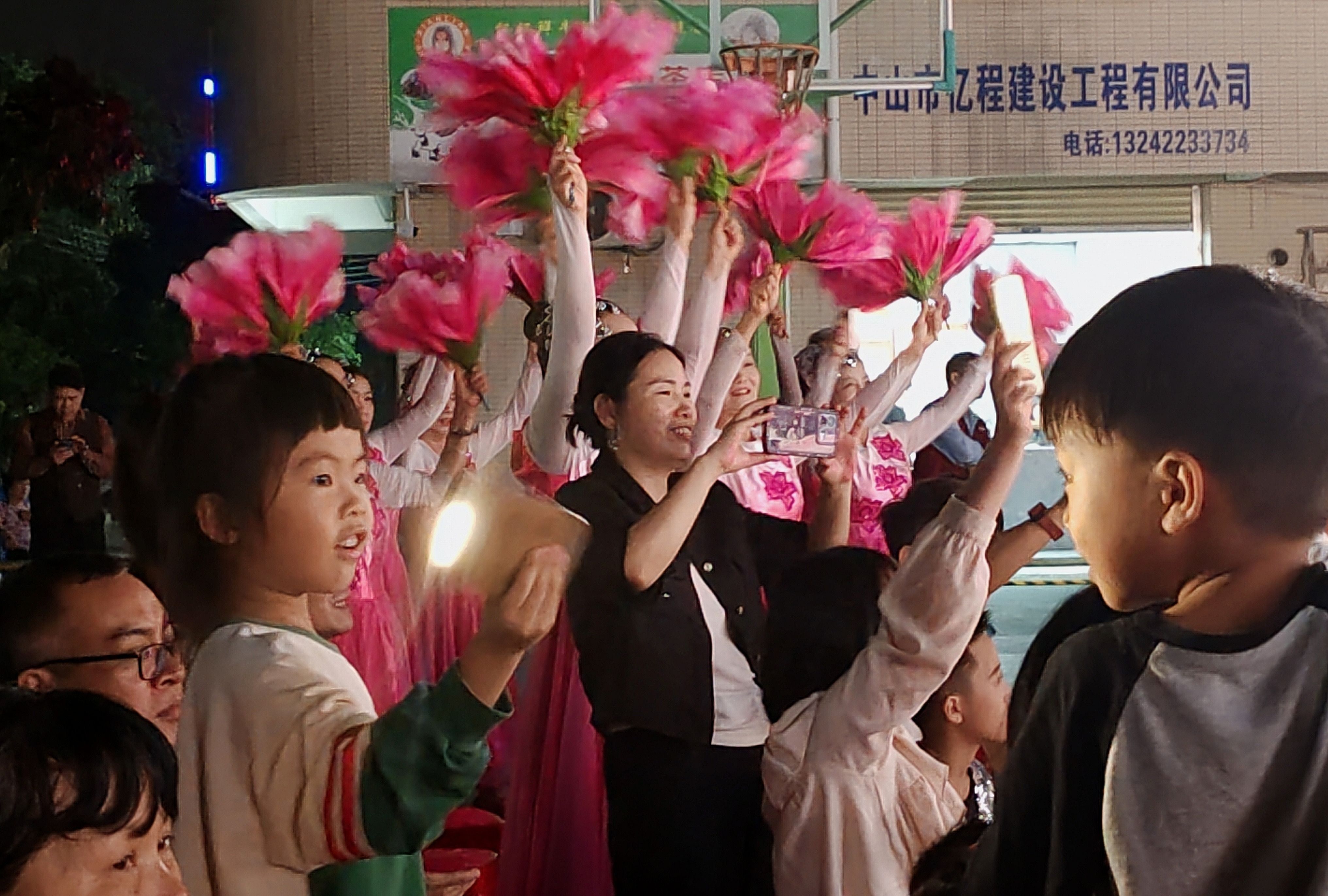 当晚,阜沙村篮球场化身露天音乐厅。14个节目为观众送上经典歌曲、流行乐、咸水歌、乐器独奏、粤曲和川剧变脸等精彩表演。一曲终了,余音袅袅,村民们悠闲地或坐或站,为台上表演者欢呼叫好。随着十五运会会歌《气势如虹》前奏响起,现场观众自发挥动手中的荧光棒,与台上歌手同声合唱。