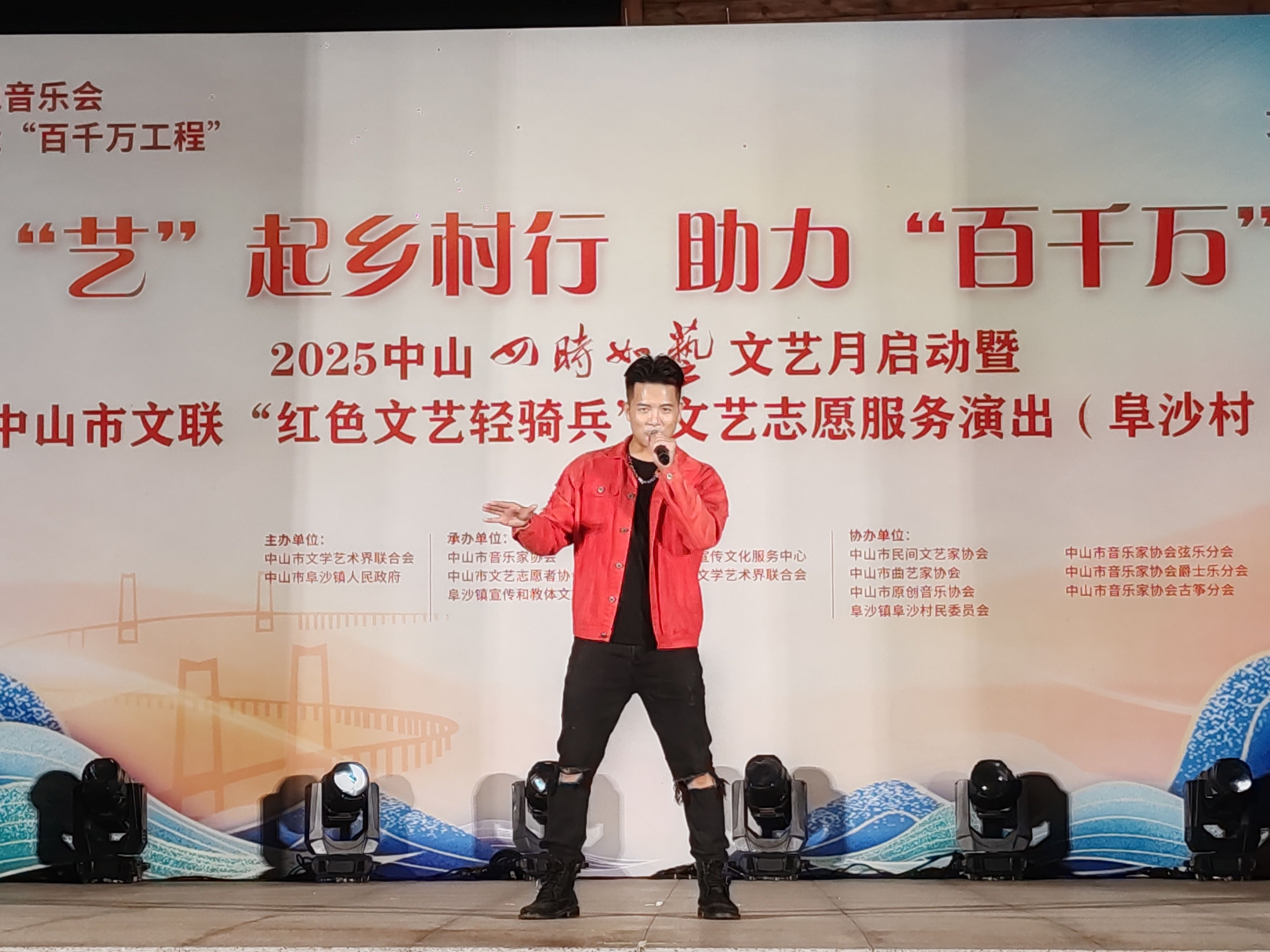 这场由中山市文学艺术界联合会、阜沙镇人民政府联合主办的“艺起乡村行 助力百千万”2025中山“四时如艺”文艺月启动仪式暨“红色文艺轻骑兵”文艺志愿服务演出活动,以体育精神与文艺力量的交融,为乡村振兴注入全新活力,吸引逾300名村民驻足观看。