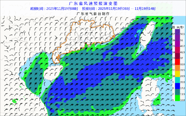 海上大风预报:20-22日,粤西海面东北风6级阵风7级,中东部海面东北风6~7级阵风8级。海面风力大,注意海上作业和交通安全。