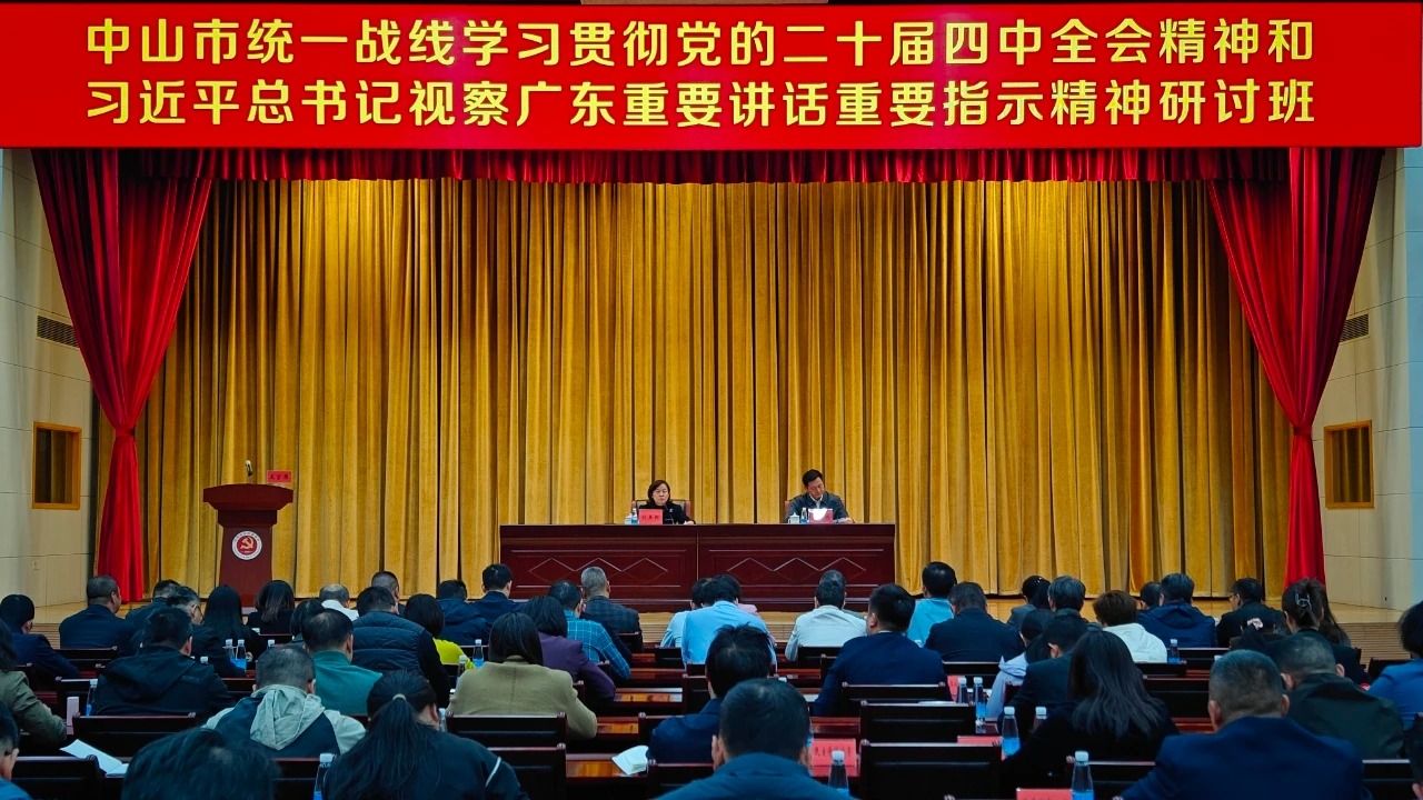 11月20日,中山市统一战线学习贯彻党的二十届四中全会精神和习近平总书记视察广东重要讲话重要指示精神研讨班在市社会主义学院举行,市委常委、统战部部长刘美新作专题辅导。