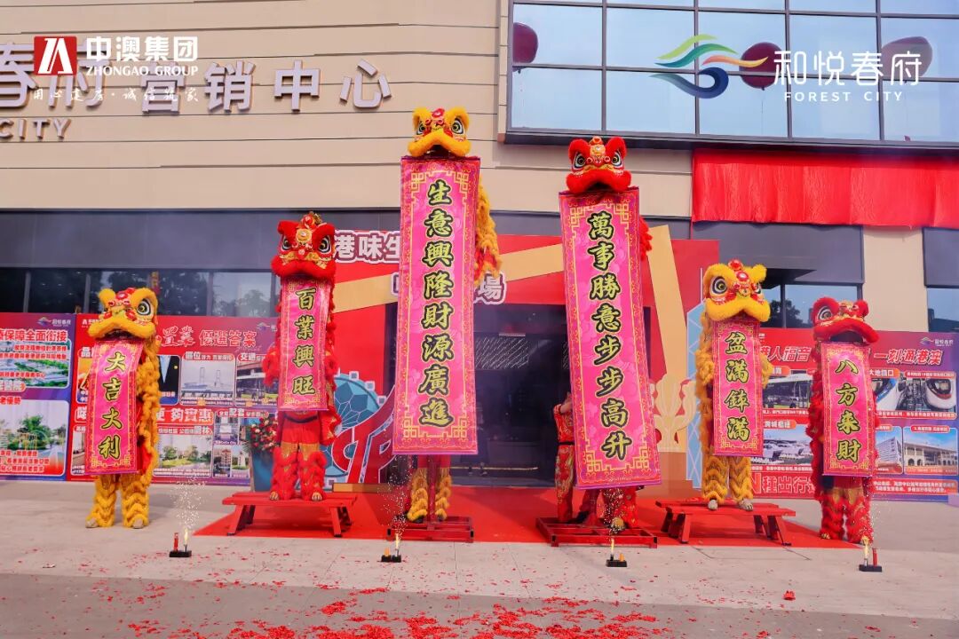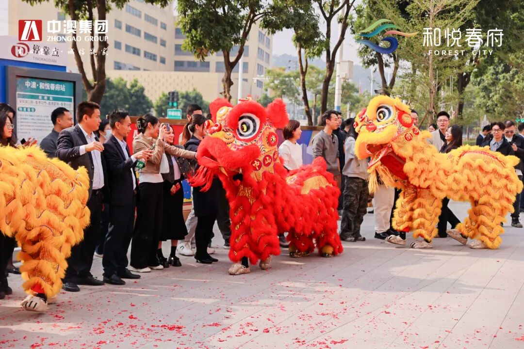 在人声鼎沸的热烈气氛下,仪式在精彩的舞狮表演中拉开帷幕。寓意项目吉祥启运、焕发新生。舞狮登凳仪式后,中澳集团总经理李总与嘉宾一同为“和悦春府直通车”揭牌。红绸落下,崭新的直通车身披彩带亮相现场,标志着站点正式落成。