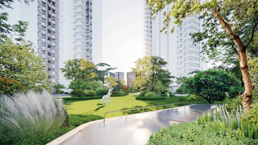 在产品打造上,和悦春府将绿色生态融入生活肌理,规划约3300平方米阳光草坪、酒店式层叠水景迎宾景观及休闲步道,绿化率超37%,漫步社区犹如置身自然秘境,让日常成为一场自然疗愈之旅。