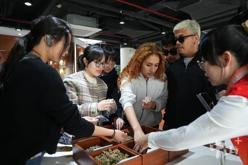随后,代表团走进国家级中医药文化体验场馆——中山市中医药文化馆。场馆内,丰富的中药材标本、详实的岭南医学史料与趣味十足的VR模拟体验区相映成趣。留学生们在智能体质辨识设备前驻足体验,在药食同源品鉴区细细品尝养生茶饮,沉浸式感受中医药文化的博大精深。委内瑞拉留学生岑安琪在体验针灸模拟操作后表示:“中医药的智慧令人惊叹,希望未来能推动中拉在传统医药领域的交流合作。”