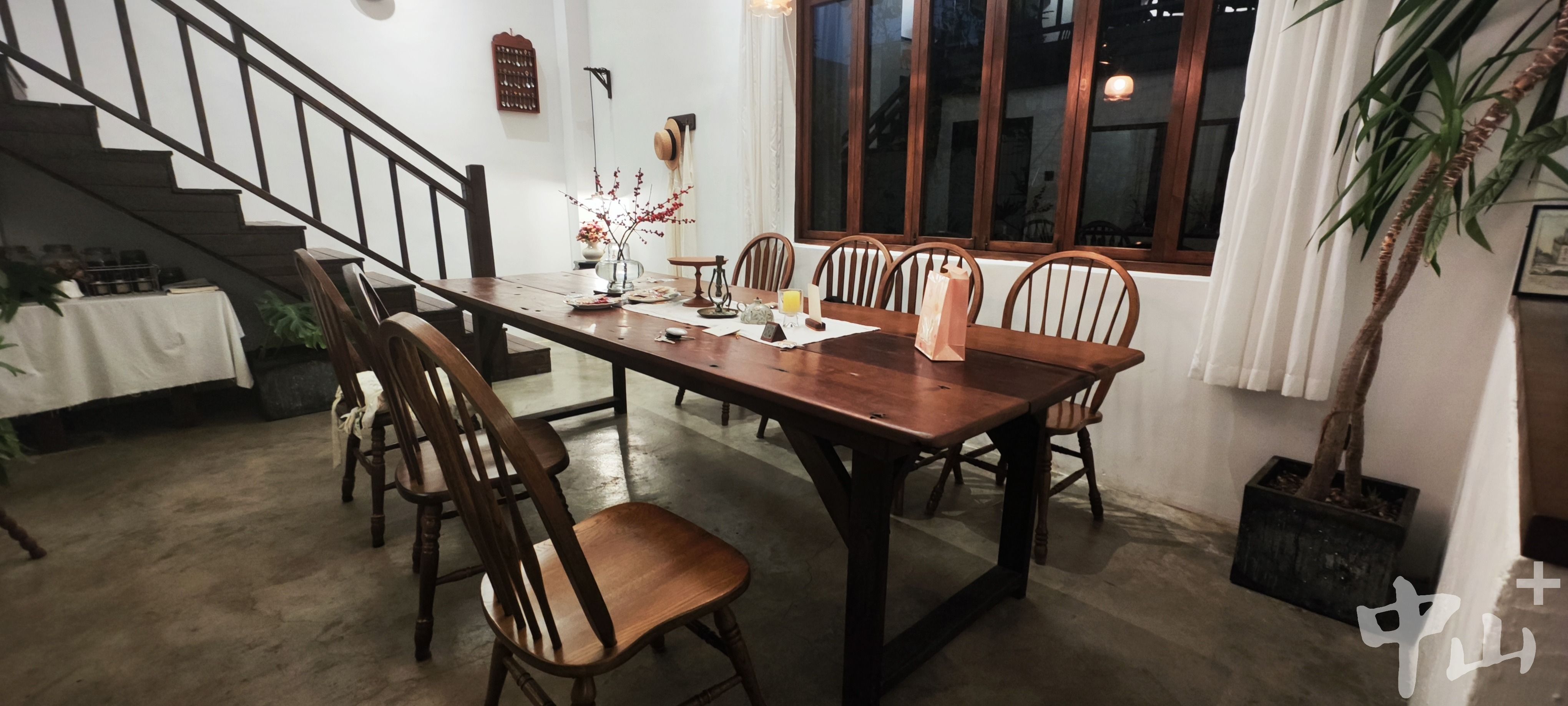 作为疍家人,她的姨父曾经经营着休闲观光的游船。如今,那些“退役”的游船船板,带着海的味道,经过重新打造,成为店里的大长桌、椅子、小桌。“大长桌的设置,让大家能够带着家人、朋友来到这里,面对面坐着交流,放松一下。”她介绍道,“累了,就过来发呆,休息就好了。”