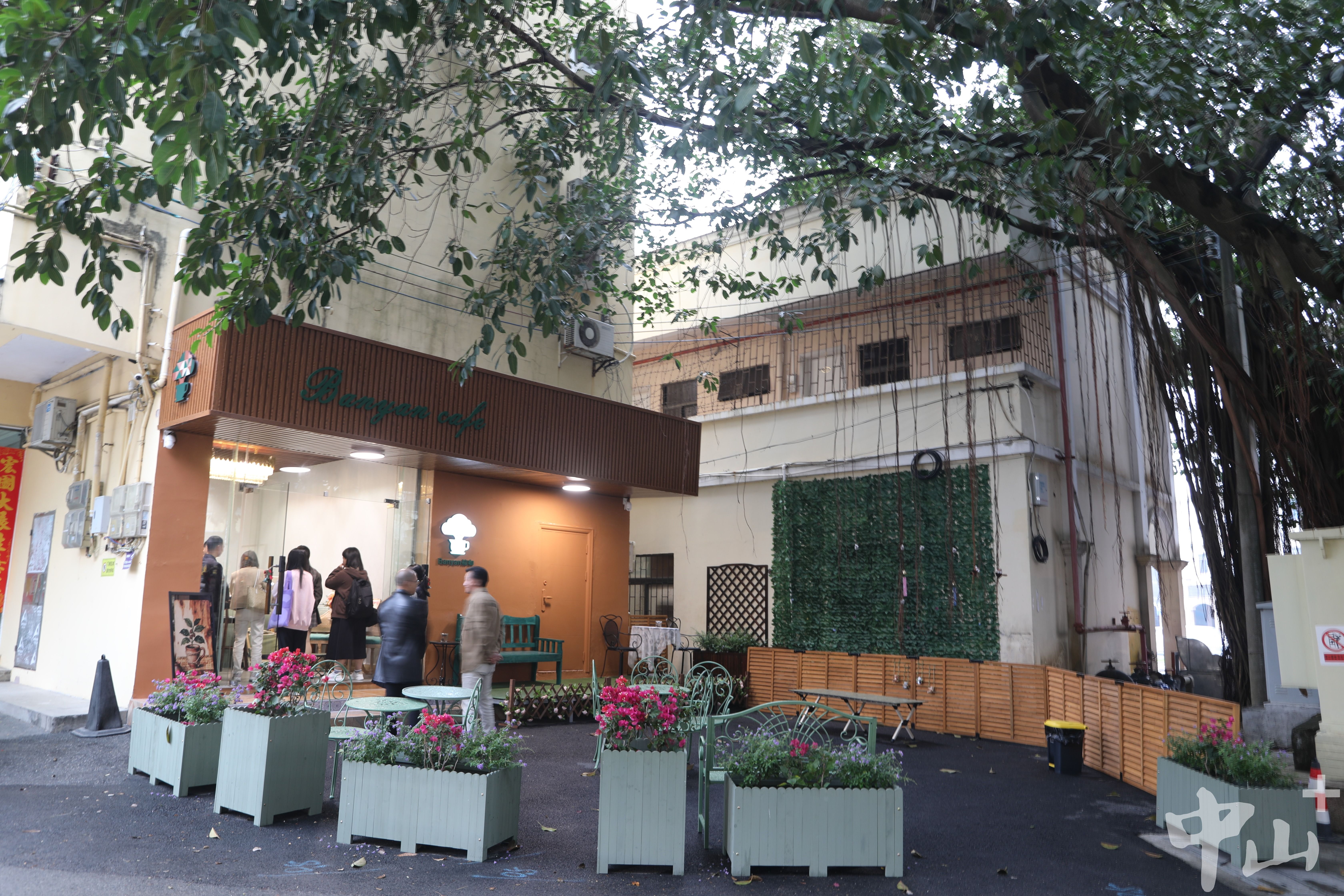 离孙中山故居纪念馆不远,翠亨新村大街入口大榕树下,退休后回村创业的甘氏姐妹俩开起“榕咖”,“希望为游人提供一处温暖的休憩点”。