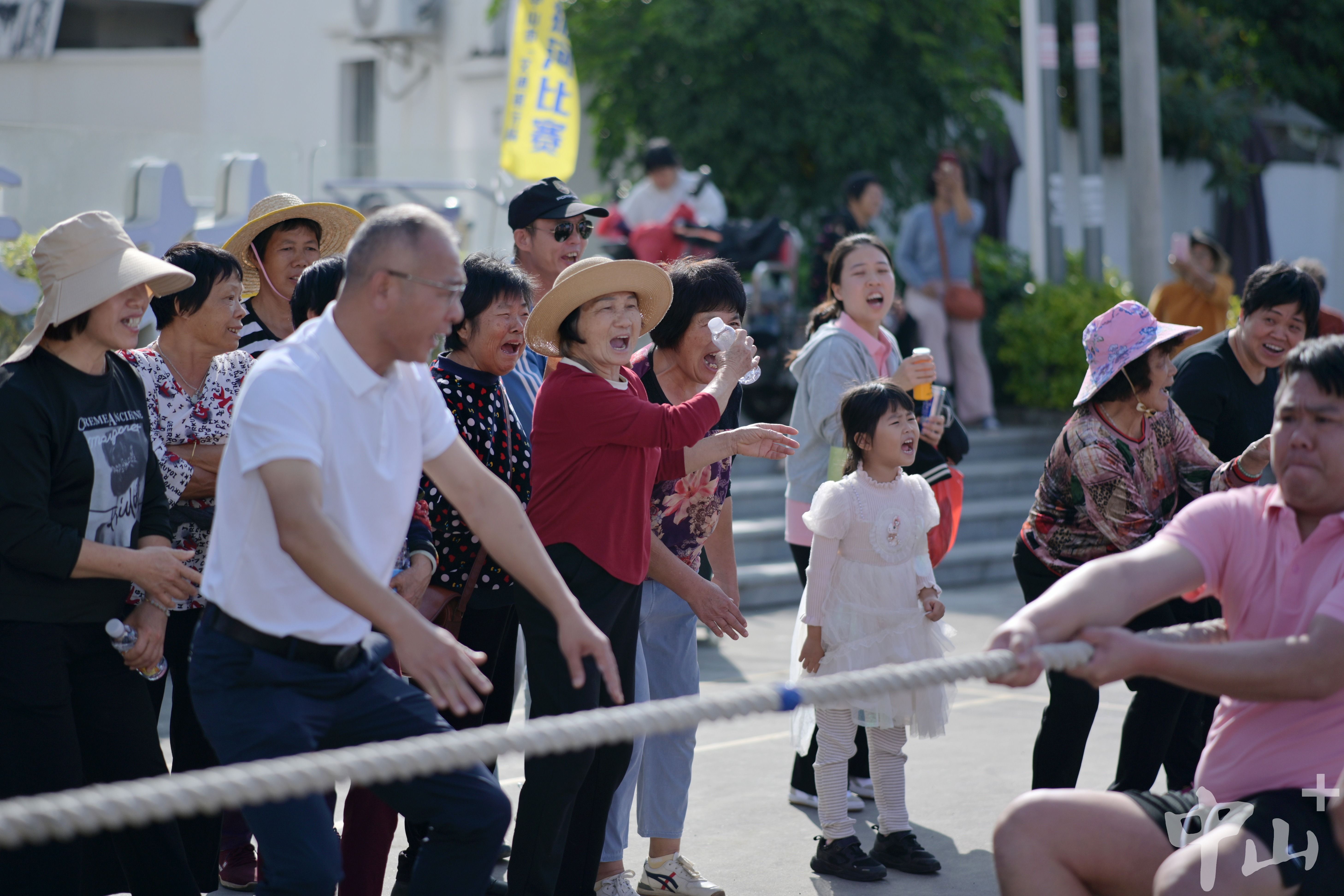 现场几位头发斑白的老婆婆尤为引人注目。她们都是左步村的村民,一边观赛一边高声助威。尤其是看到本村“粉红色军团”登场时,老人们情不自禁地蹦跳鼓掌。78岁的梁美珍一早就赶到现场,77岁的汤丽芬一边观赛一边与老姐妹们交流心得:“这类活动真好,最好每月办两场,让我们这些老人在家门口也能‘参赛’。”汤婆婆兴奋地回忆,自己年轻时也曾参加拔河比赛,得知赛事消息后,便约上几位老姐妹早早赶来。