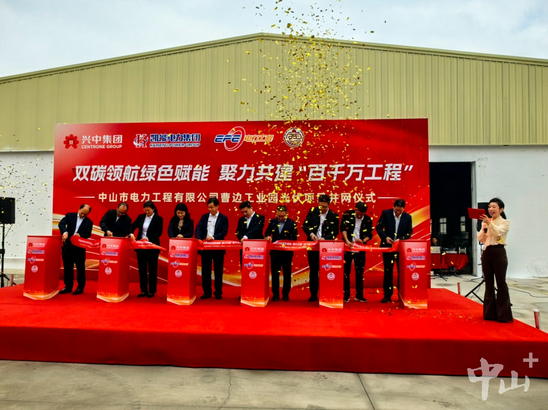 12月22日上午,“双碳领航绿色赋能 聚力共建‘百千万工程’”中山市电力工程有限公司曹边工业园光伏项目并网仪式,在南区街道曹边村顺利举行。随着并网指令下达,光伏板阵列成功接入电网,标志着该项目正式投入运营。在“双碳”目标引领下,这一绿色能源项目不仅为曹边村乡村振兴注入新动能,更成为南区街道推进“百千万工程”的全新亮点。