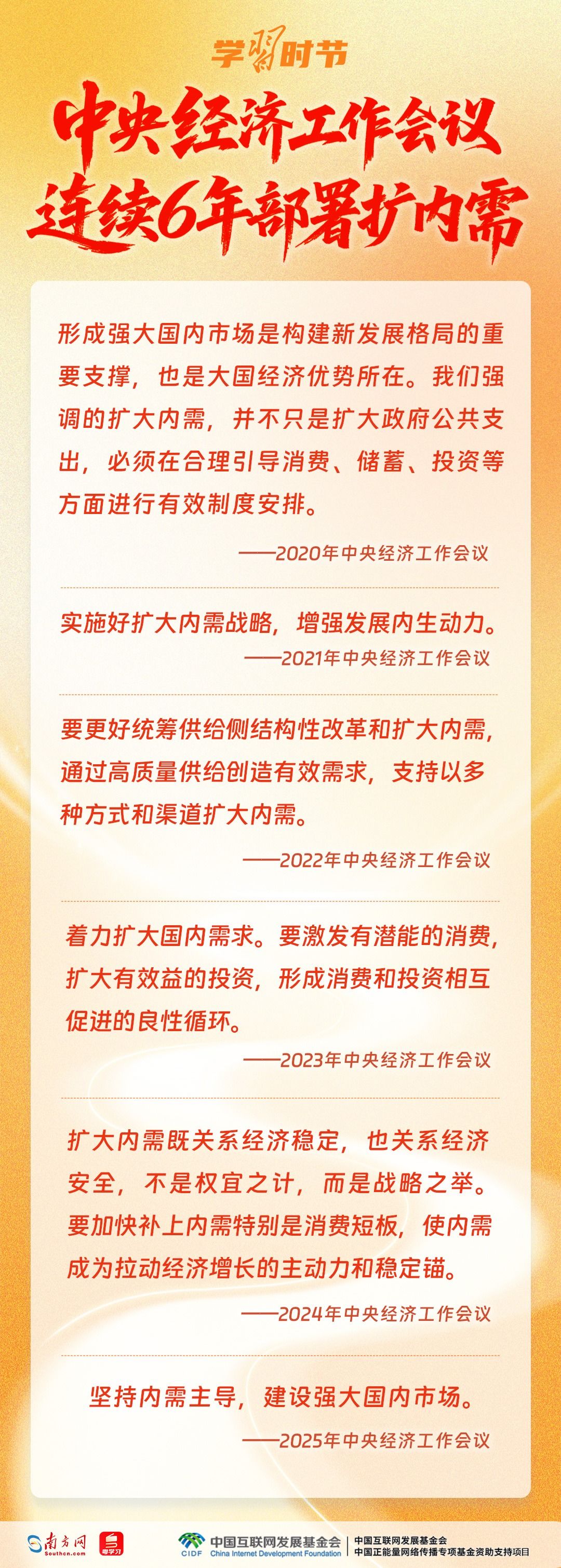 2020年以来,中央经济工作会议连续6年对扩大内需进行部署。