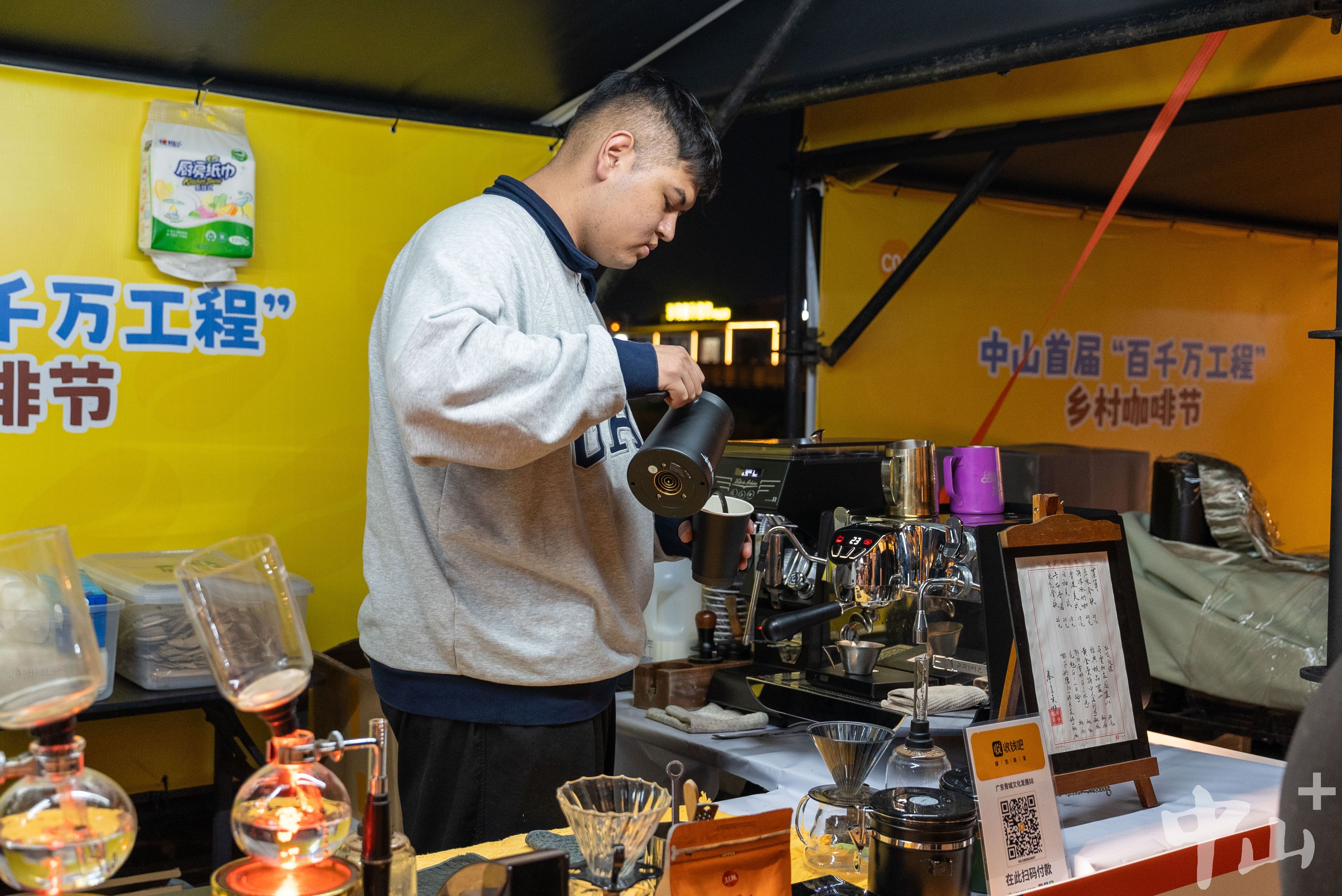 咖啡的香气,是吸引年轻人走进乡村的美妙信号。在主会场曹边村,从火炬高新区驱车前来的“日尝咖啡”主理人万梦梅,在侨乡的夜色下忙碌地出杯。她敏锐地观察到,乡村安静悠闲的节奏和更低的成本,正成为都市年轻人试水创业的新选择。而在曹边村本地,由李小姐经营的“炮楼咖啡”,开业两个多月来,高峰期一天能卖出200杯,也印证了乡村新业态的旺盛生命力。