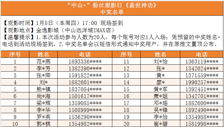 2.中奖名单将会以短信形式通知中奖用户,并在本推文置顶公布。