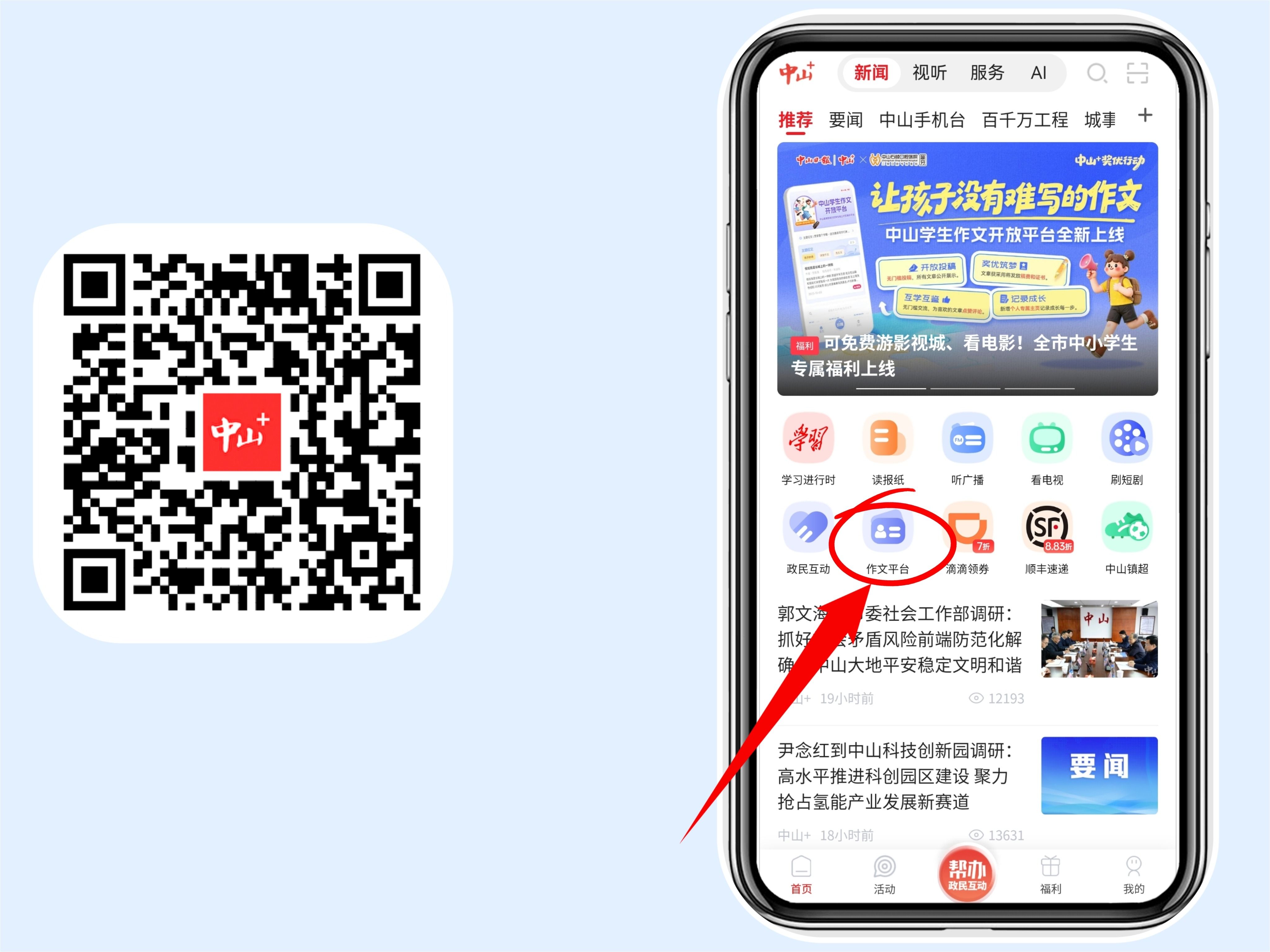 查榜单:每月第一周第一个工作日,打开“中山+”App,进入“作文平台”,在首页查看上月“热文榜”和“积分榜”完整名单;