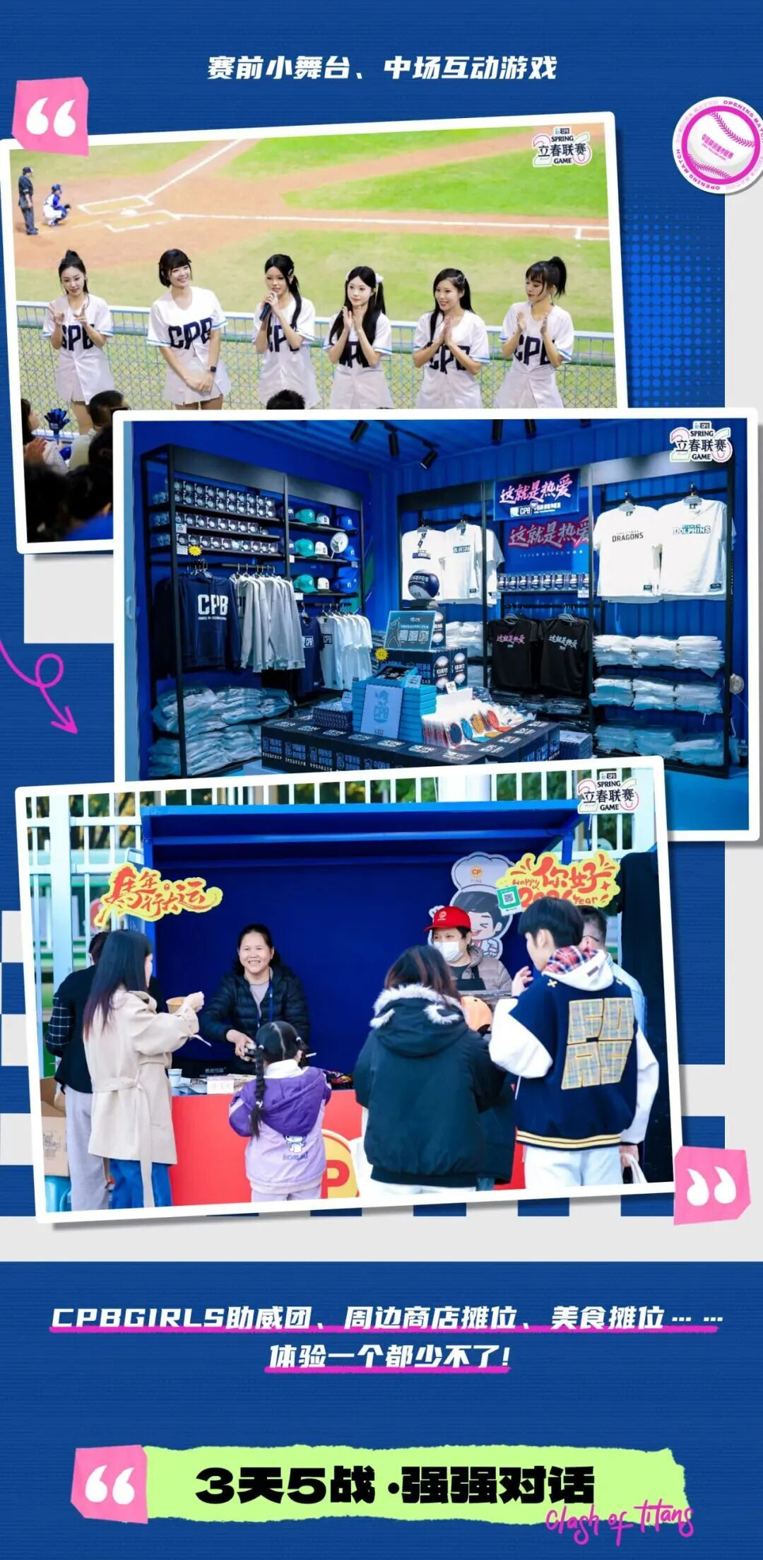 作为国内棒球界的职业联赛,本届赛事不仅汇聚高水平球队的激烈对抗,更将通过 CPB GIRLS助威团、周边商店、美食摊位、赛前小舞台、中场互动游戏等丰富内容,打造一场充满激情与活力的棒球盛宴。