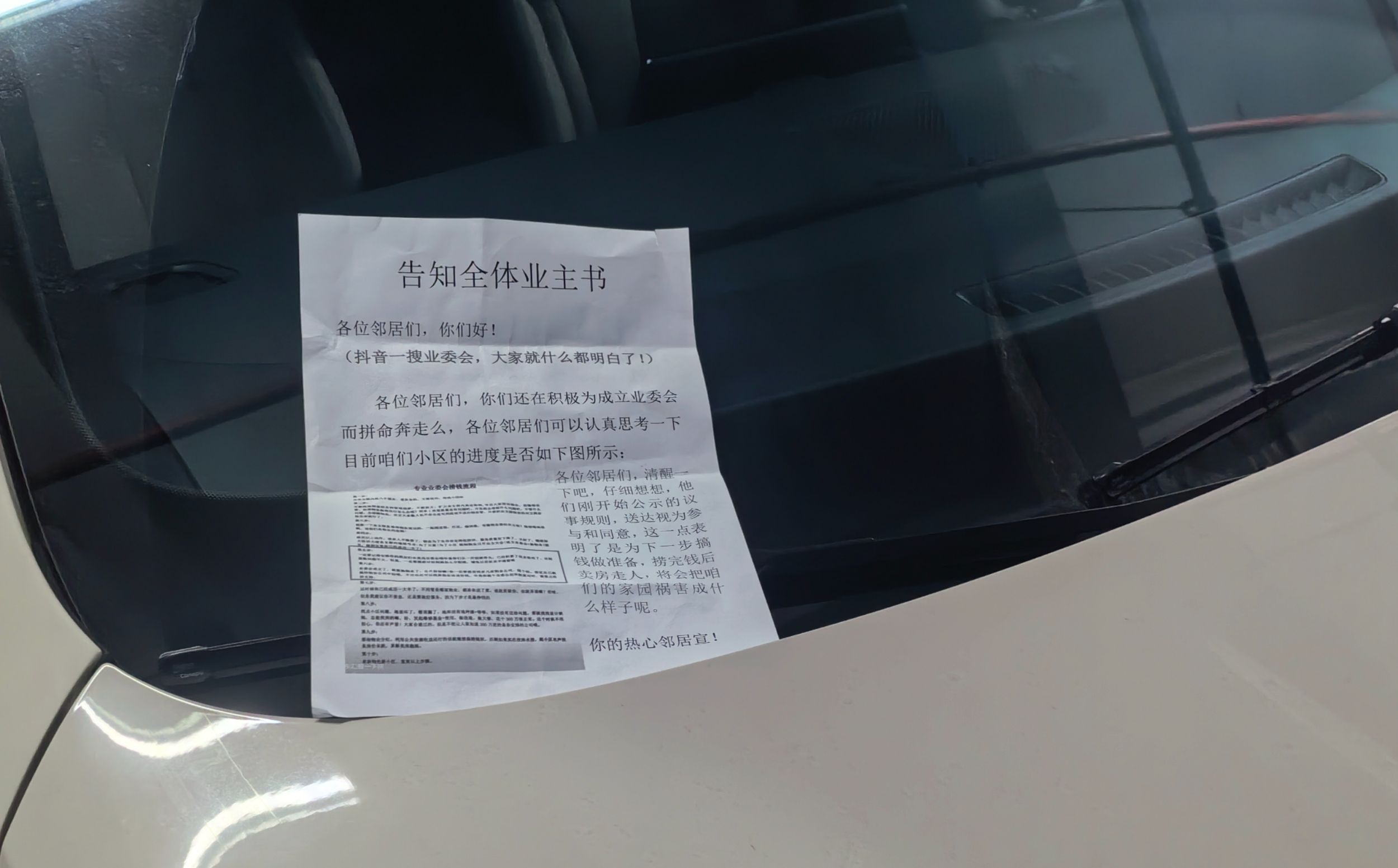对于这份从天而降的传单,业主黄女士直言:“成立业委会怎么会有坏处呢?”业主周先生则更关注操作层面:“几乎每家每户、每辆车都被放了,这工作量绝不是一般人能做到的吧?”他的质疑,道出了许多业主心中的谜团:谁有能力、有意愿进行如此大规模的匿名投放?