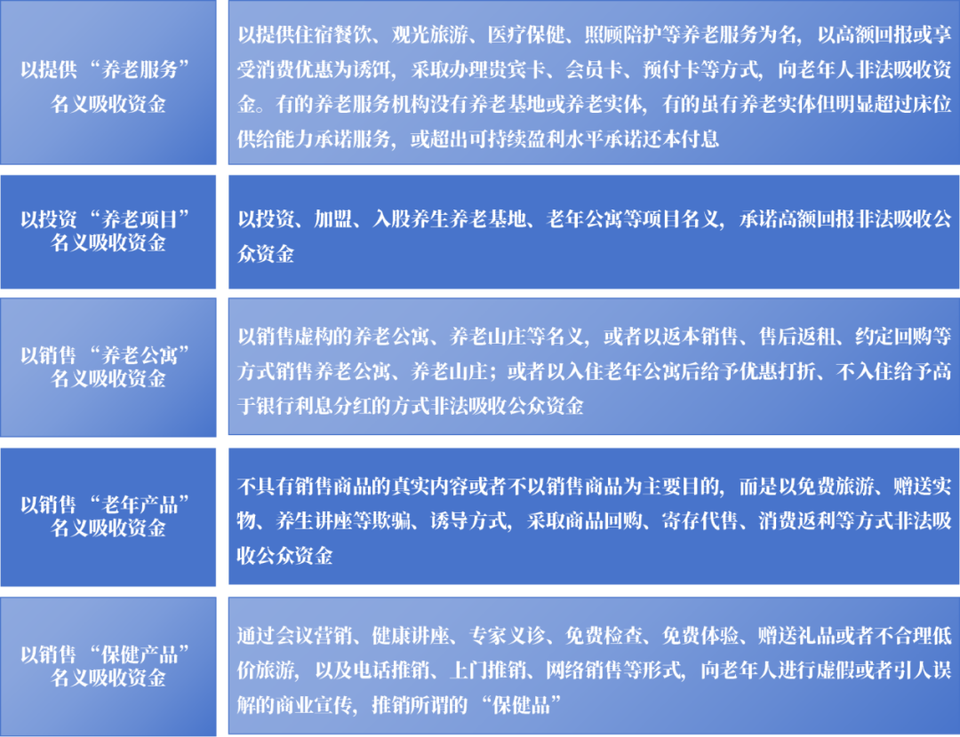 此外,也有一些养老诈骗不是以养老服务为载体,但针对的对象却是老年人,他们的经营方式、宣传手段、推销内容、获客方式等均是瞄准老年人群体的特点进行精心设计的,迷惑性强、利诱性强,需高度关注,切实防范。