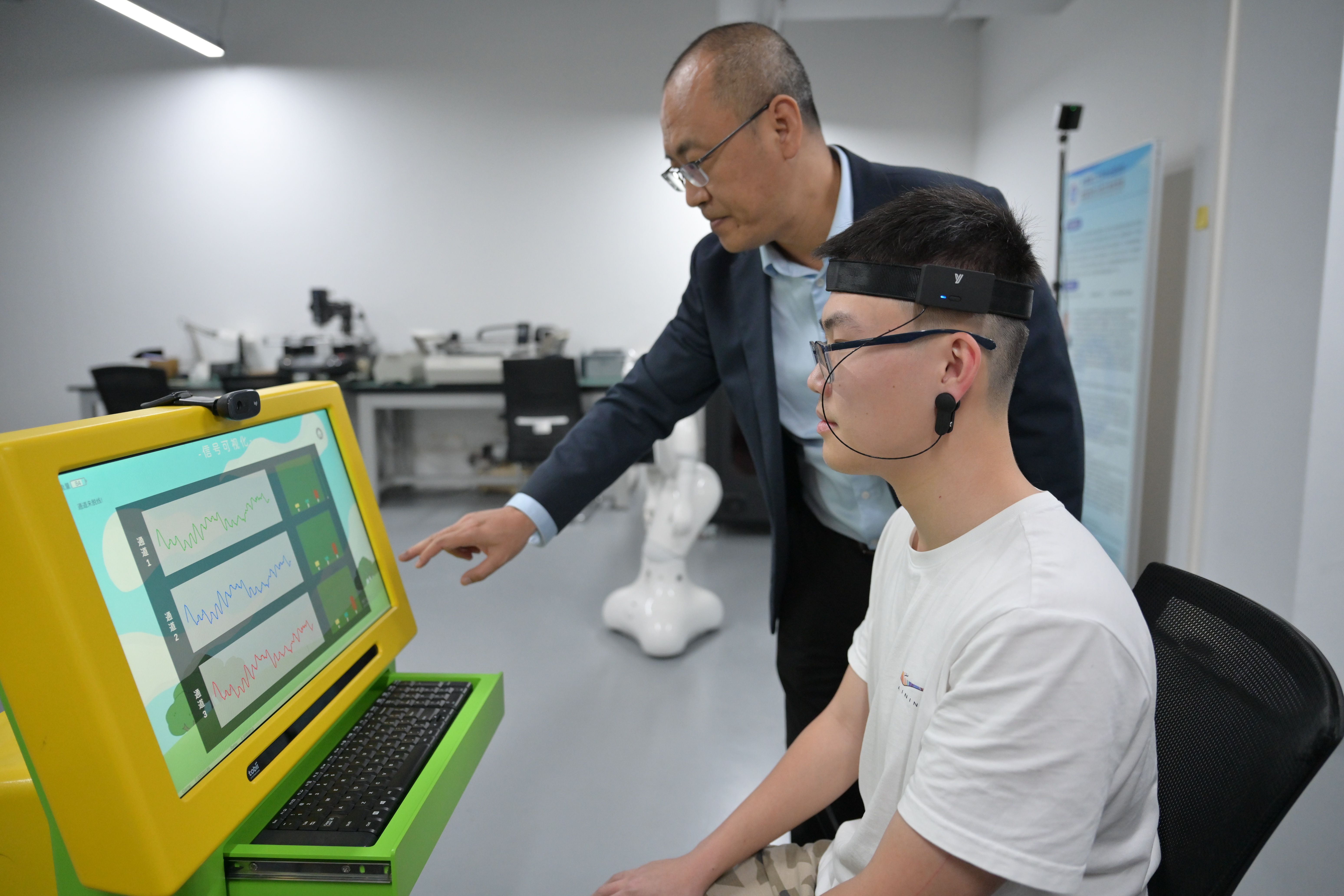 记者了解到,实验室是长春理工大学中山研究院启动的首批13个实验室之一,面向世界科技前沿、面向脑机接口技术,围绕国家和广东省重大需求,围绕脑健康,开展阿尔兹海默症、抑郁症、自闭症等神经性脑疾病的早期智能诊断与物理干预,以及设备研发等开展创新研究。如今该实验室团队已完成国家自然科学基金项目3项,省部级科研项目10余项,技术成果应用于康复医疗、智能人机交互等领域。