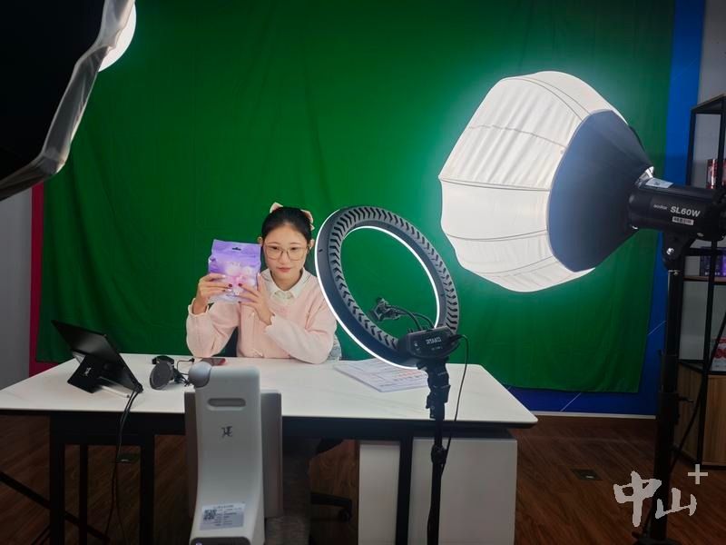 “家人们!外出沾到细菌病毒不用愁,这款除菌液五大零添加,无香精、无酒精、无甲醛、无荧光剂、无增白剂,给全家安心守护!”走进中山职业技术学院(以下简称“中山职院”)的电商直播间,镜头前的学子主播神采飞扬,一边娴熟展示产品,一边与观众热络互动,弹幕滚动不停,订单持续刷新。这不是模拟实训,而是实打实的电商实战。