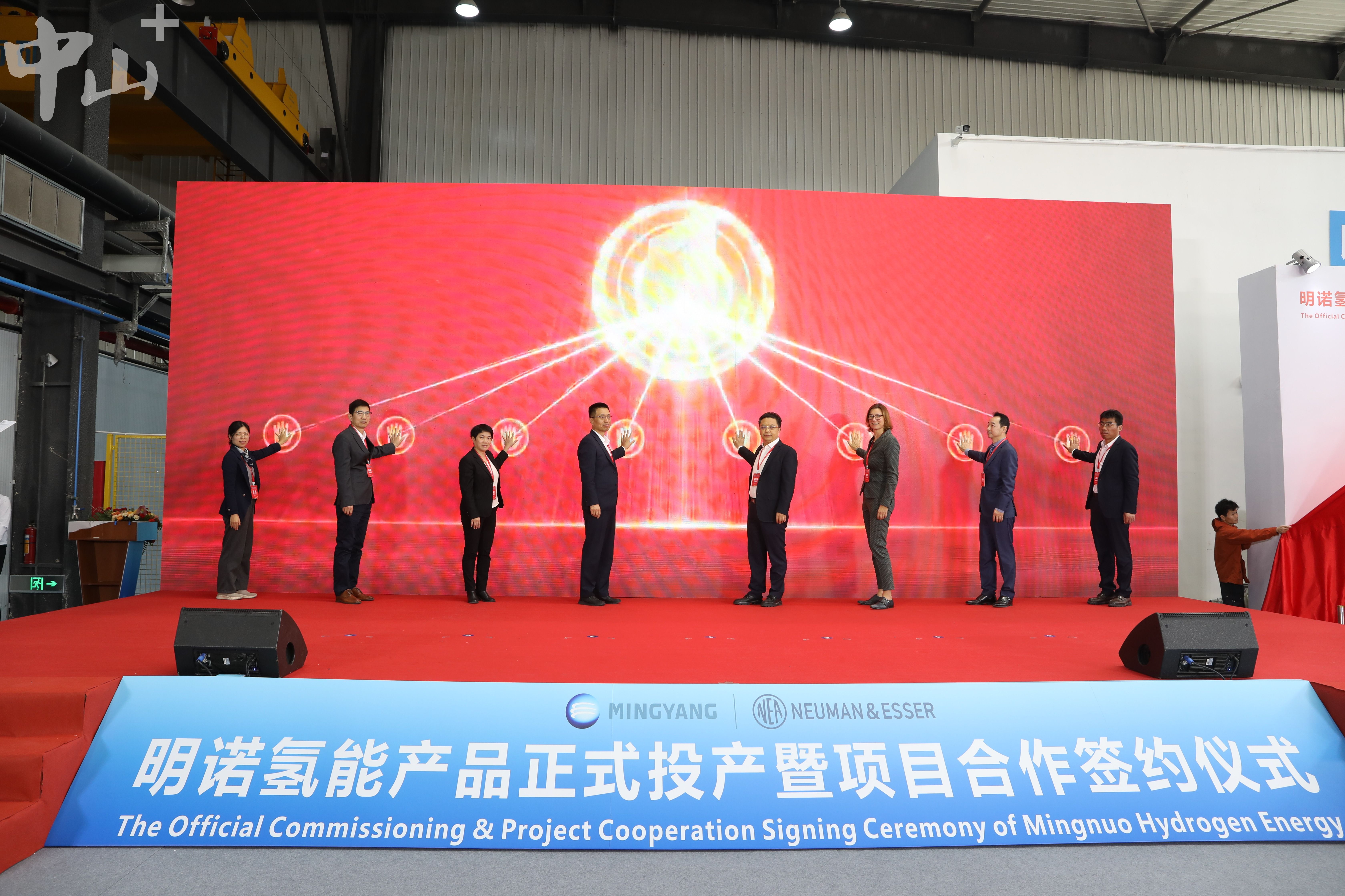 明诺氢能由国内新能源龙头明阳电气与德国Neuman & Esser集团合资设立,是双方技术与资源深度融合的成果。仪式现场,红色幕布缓缓拉开,凝聚中德技术精华的TKH液驱压缩机惊艳亮相,设备采用德国Hofer高压压缩技术,结合明诺高端制造能力,可灵活适配制氢工厂、加氢站等多元场景,技术水平位居国内前列。