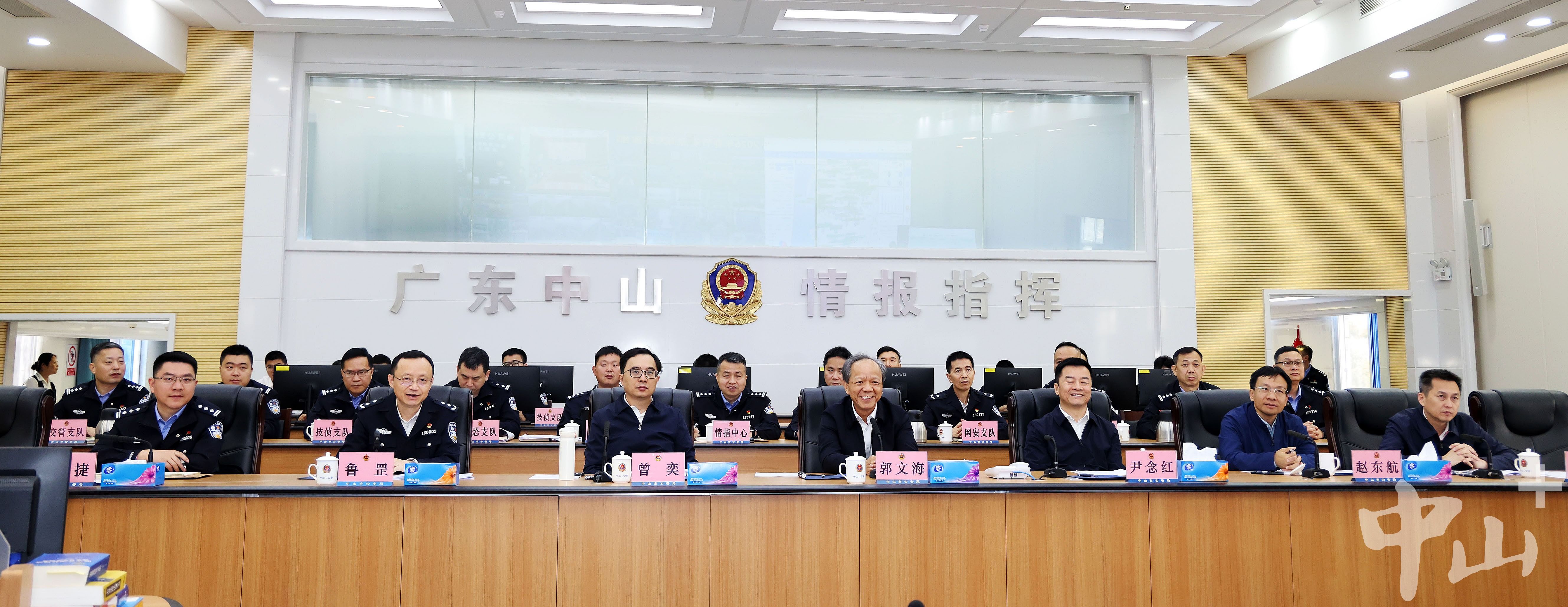 在市公安局指挥中心,郭文海、尹念红通过视频系统查看景点商圈、高速公路等重点区域实时画面,随机连线各镇街,详细了解节日期间值班备勤、警力部署、警情处置等情况,并代表市委、市政府,向全市公安干警、武警官兵以及所有奋战在一线、保障中山安全稳定的工作人员,致以衷心的感谢和诚挚的节日问候。郭文海指出,今年春节假期时间跨度长,人流、车流量大,文旅活动密集,要时刻绷紧安全这根弦,进一步强化底线思维、极限思维,严格落实值班值守制度,科学调配警力,提高路面见警率、管事率和震慑力,加强大型活动秩序维护和安全防范,全力做好应急处突、交通疏导等工作,及时把各类风险化解在萌芽、处置在前端,让全市人民度过一个平安稳定文明祥和的新春佳节。