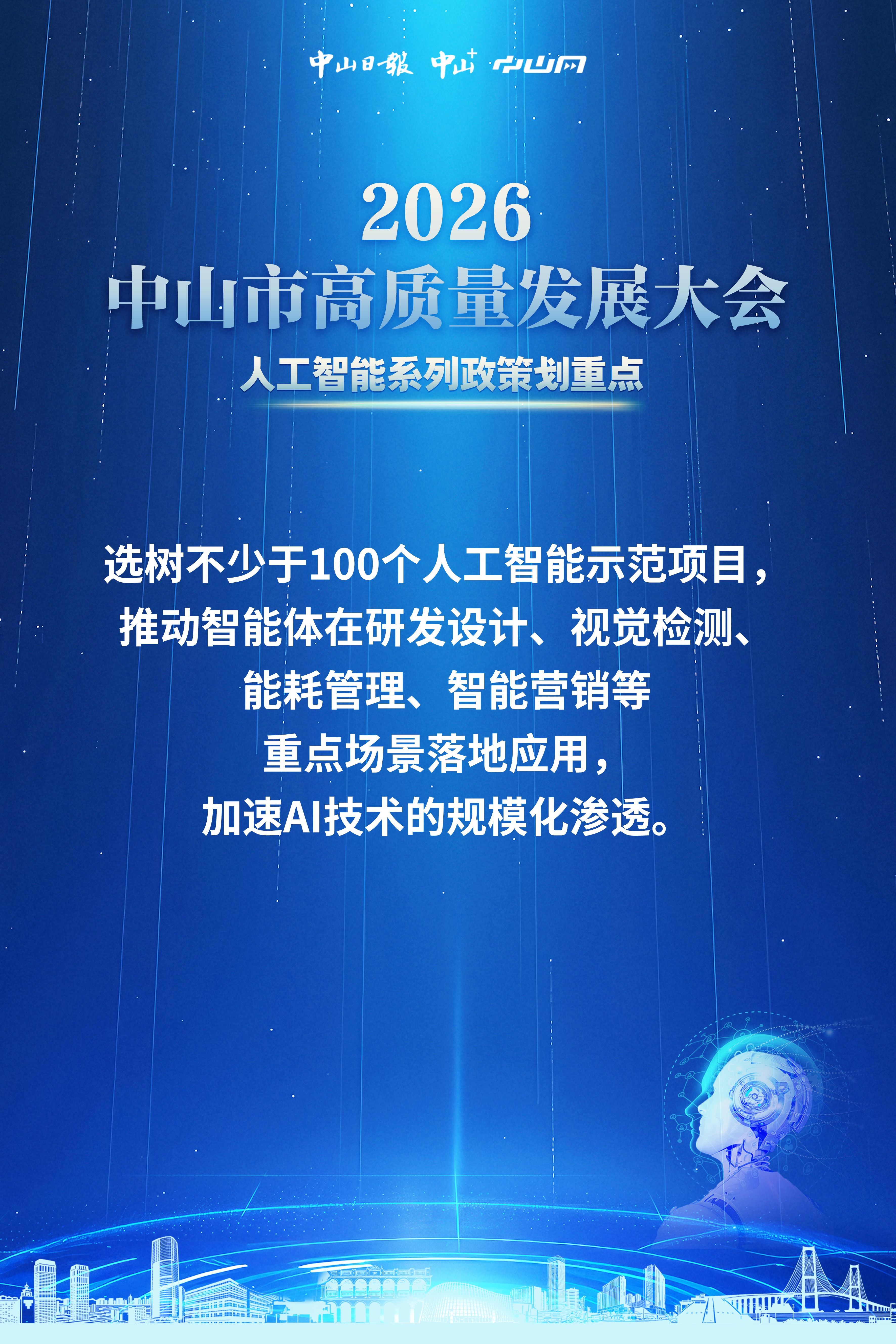 2月24日下午,2026年春节假期后开工第一天,中山召开全市高质量发展大会,会上发布了人工智能系列政策,具体有哪些重要内容?一组海报带你划重点↓↓↓