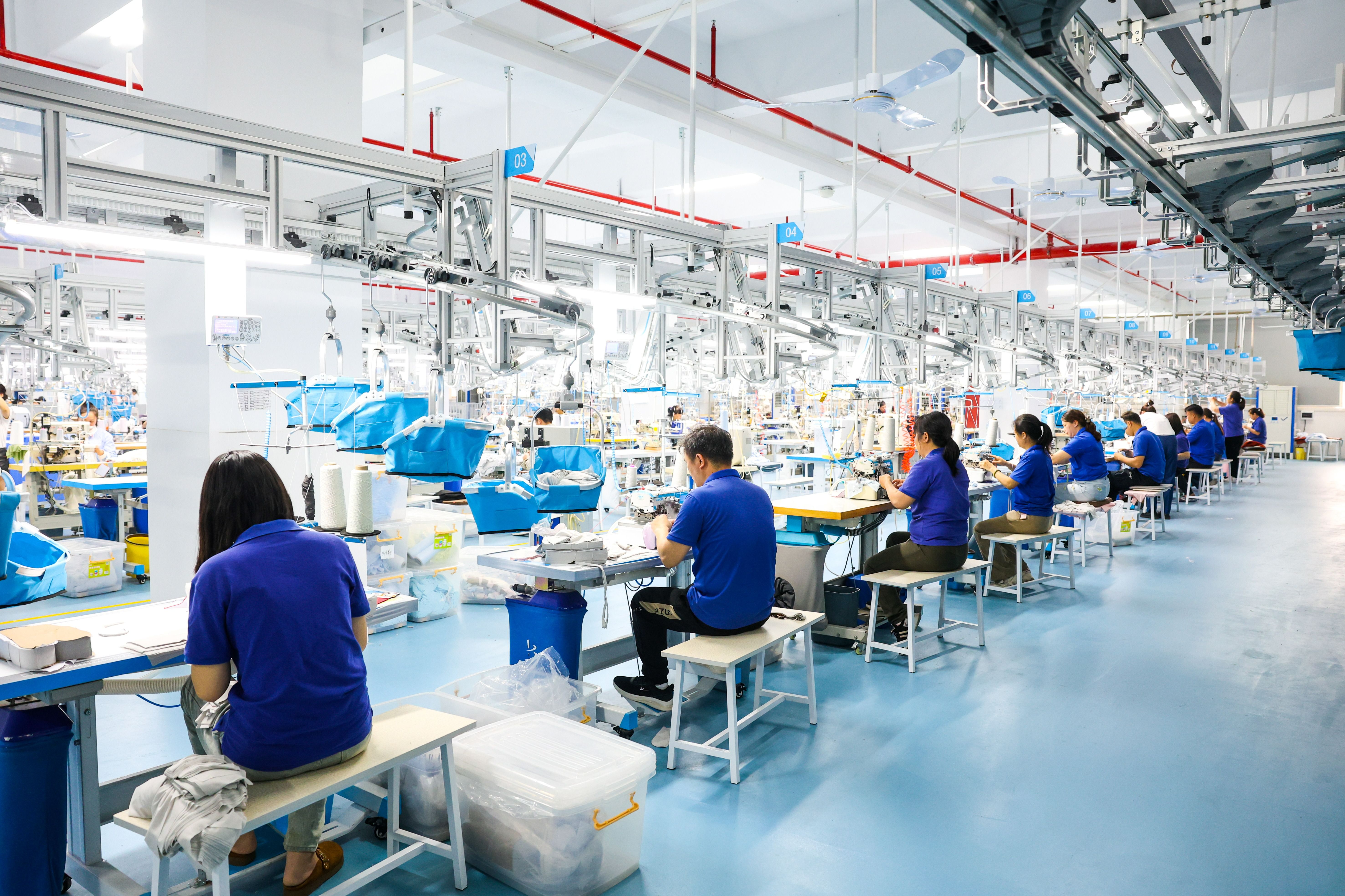 2月25日,中山市科达制衣有限公司生产车间内的全自动吊挂系统正高效运转,机器人穿梭运送成品,工人们迅速投入岗位,一派繁忙而有序的生产景象。“目前企业员工返岗率已超75%,公司各生产线已全面开工。2026年订单延续去年良好态势,生产计划已排至6月份。”该公司总经理杨健洵介绍,依托2025年完成的数字化、智能化车间升级改造,科达制衣去年实现年产值增长150%,新的一年公司将继续发挥智造优势,力争年产值增长100%。