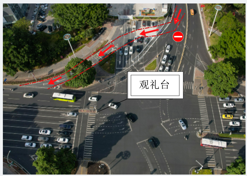 ■答谢台路口交通组织:3月1日0时至3月3日18时,在兴中道中山路路口搭建观礼台期间,中山路东西向交通正常通行;兴中道北往南方向实施交通管制,禁止直行,车辆仅可通过右转专用道进入中山三路。