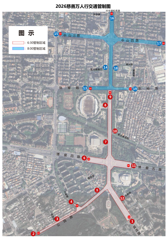 中山市第39届慈善万人行活动(以下简称“万人行”)将于3月3日(星期二,农历正月十五)在兴中道举行。为保障活动期间道路交通安全有序,市公安交警支队将对兴中道及其周边区域分时段实施临时交通管制。