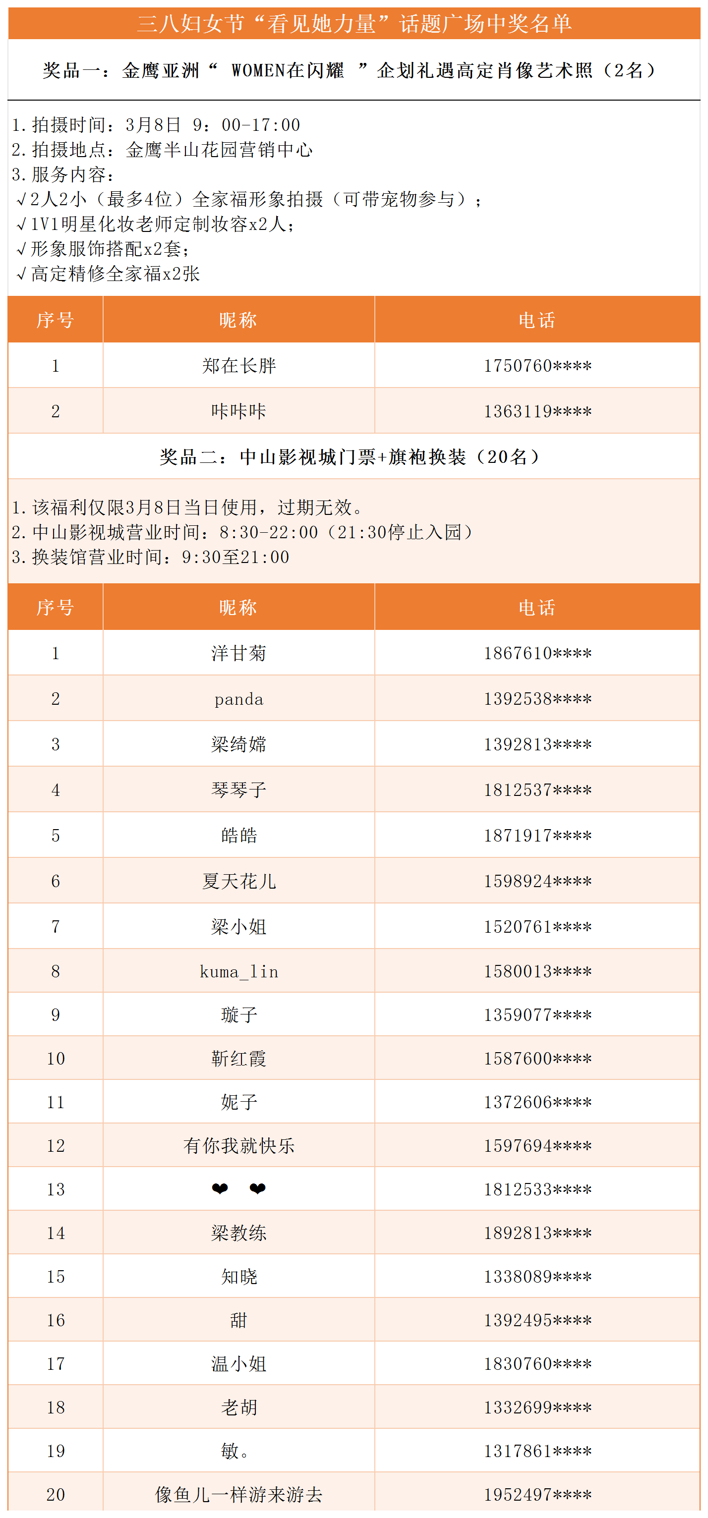 结果将于3月9日下午5时前于本条推文及中山+话题广场置顶公布(其中肖像艺术照拍摄名额和影视城中奖名额,将于3月6日下午5点前公布,将提前通知中奖者)。
