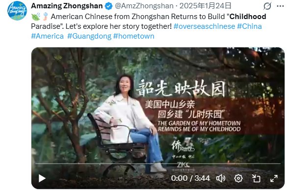 由广东省侨联主办的2025“风韵南粤”短视频大赛自启动以来,便受到全省侨界的广泛关注和热烈响应。在本次大赛中,中山市海外传播中心选送的作品《美国中山乡亲刘健韶回乡建“儿时乐园”》《隐于中山侨乡的百年照片,让南半球的他们血脉觉醒》,以鲜活的侨乡故事和细腻的情感表达,分别荣获大赛三等奖。作品聚焦中山侨界人物与历史记忆,通过镜头语言讲述乡土情怀与文化根脉,在众多参赛作品中脱颖而出,获得评委和观众的认可。